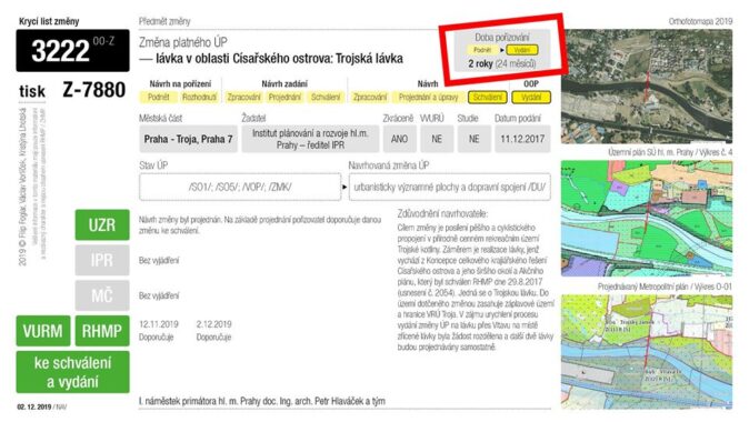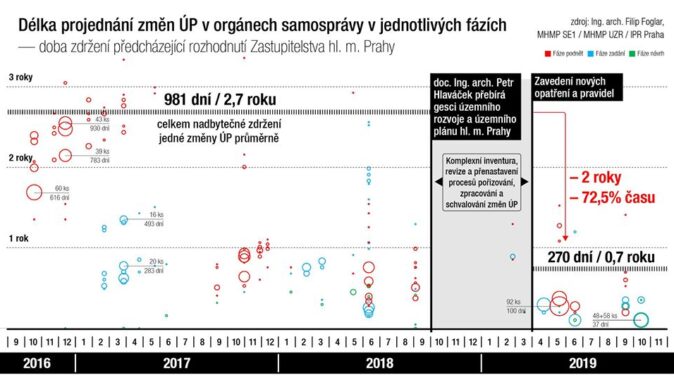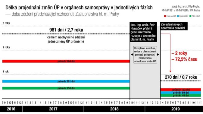 (ČTK) – Pražský magistrát zrychlil projednávání změn územního plánu. Z původních 981 dní se průměrná doba snížila na 270 dní. Zjednodušily se potřebné dokumenty, v budoucnu se ještě vylepší, řekl 10. prosince novinářům náměstek primátora Petr Hlaváček (za TOP 09). Magistrát projednává ročně průměrně 6980 změn. Územní plán určuje, co se kde smí stavět. Město nyní připravuje nový metropolitní plán, který bude hotov v roce 2022.
