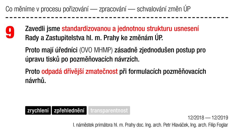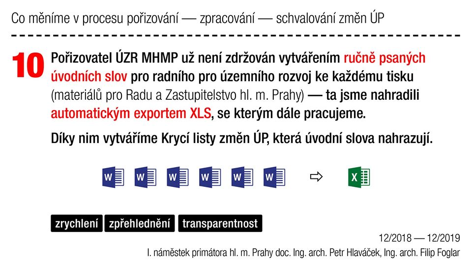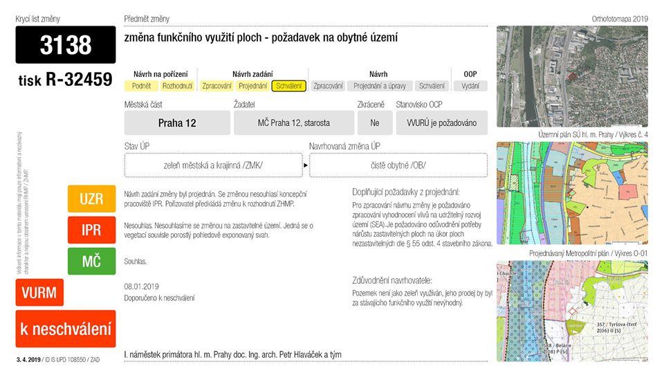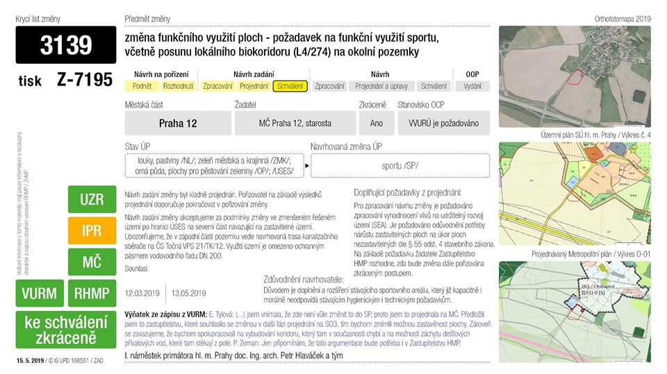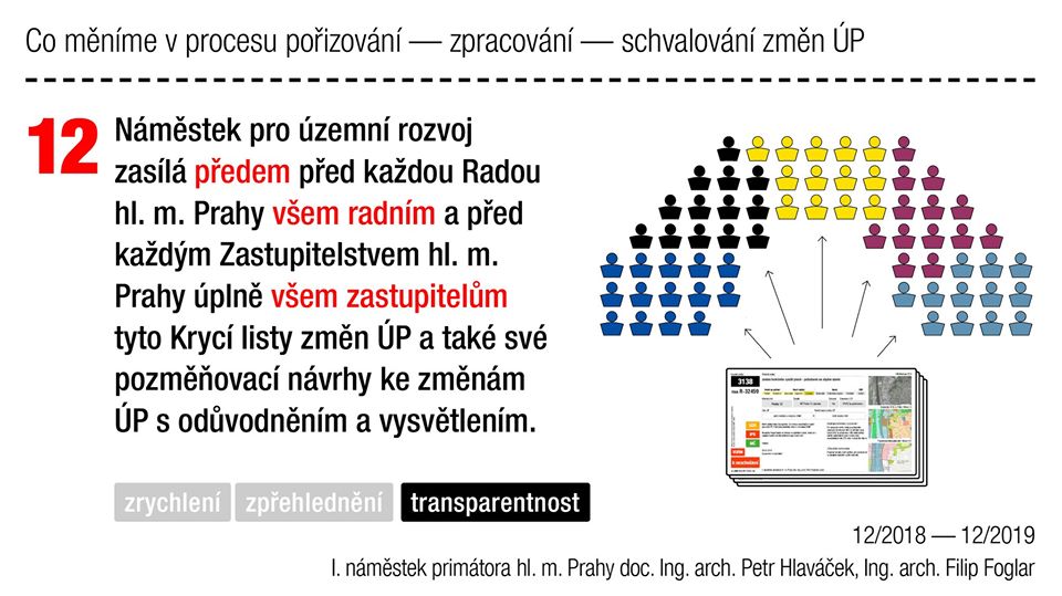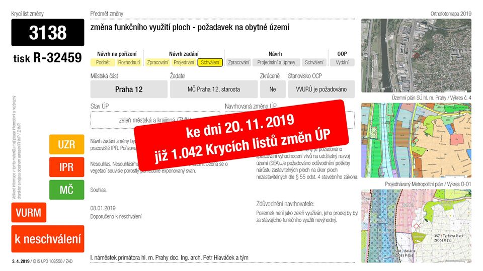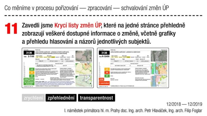 Nově byly vytvořeny tzv. krycí listy, které na jedné stránce shrnují všechny důležité informace o změně, a to včetně map nebo vyjádření dané městské části. Barvami jako na semaforu tam pak jsou vyjádření jednotlivých úřadů. Listy jsou předkládány například zastupitelům, kteří se tak s nimi mohou snáz seznámit.