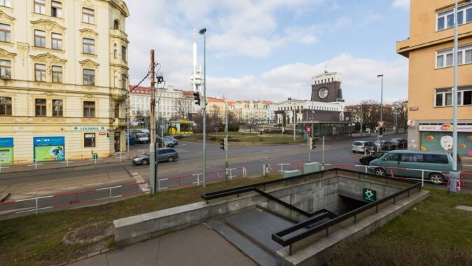 Vinohradské mezi křižovatkou za Muzeem ke stanici Želivského. Studii