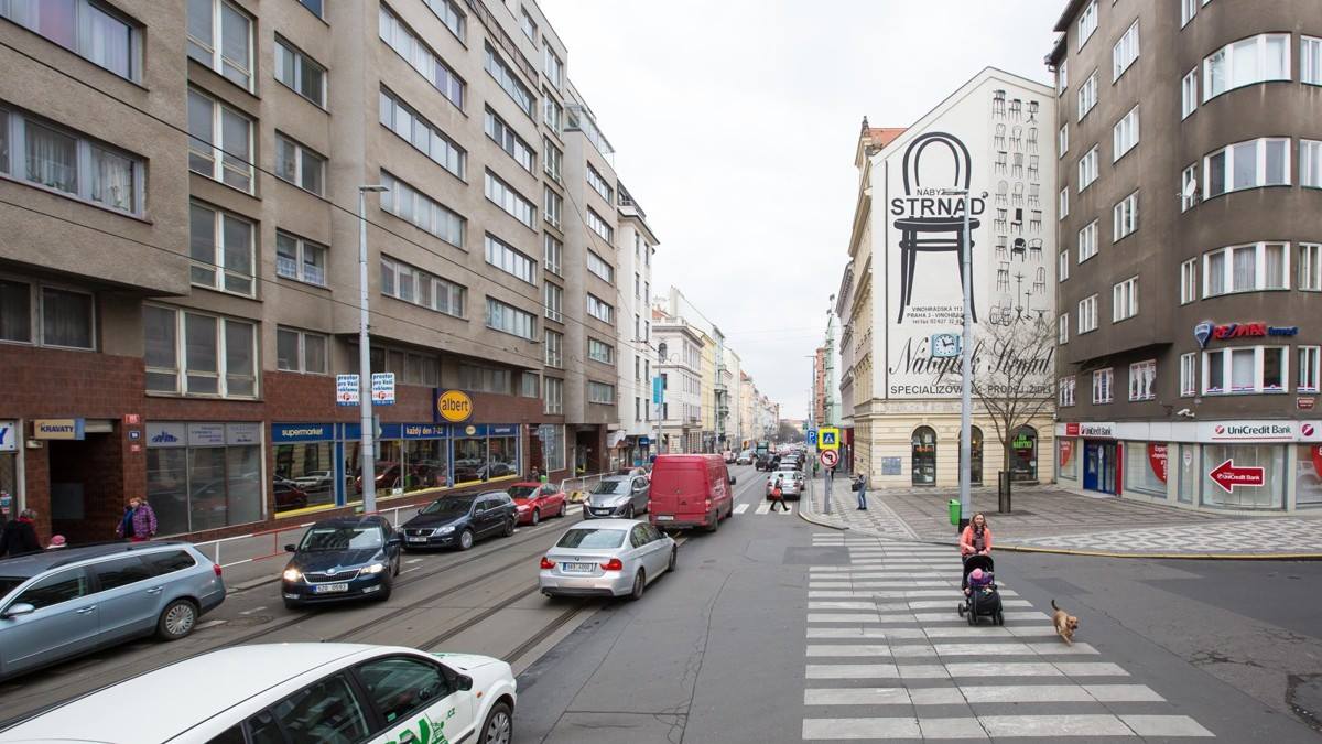 Vinohradské mezi křižovatkou za Muzeem ke stanici Želivského. Studii