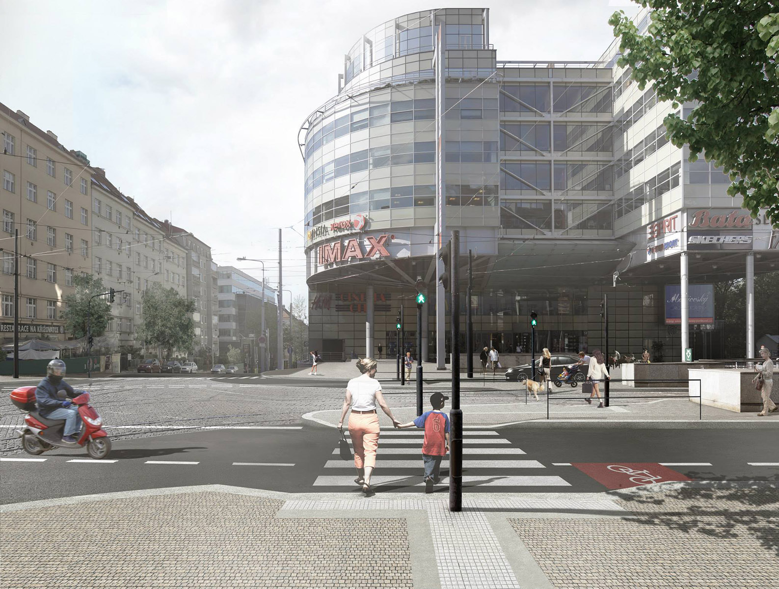 lidé přes křižovatku nemuseli dostávat pouze podchodem. Přechody pak