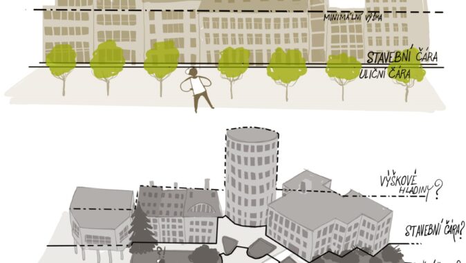 a vrací se k instrumentům plánování města – uliční a stavební čáře. Předpis
