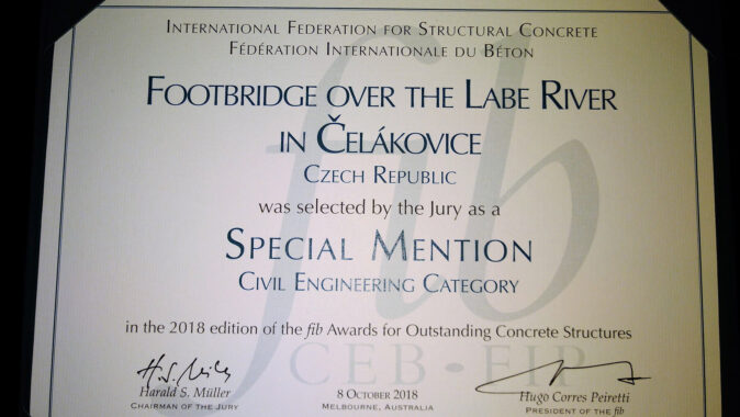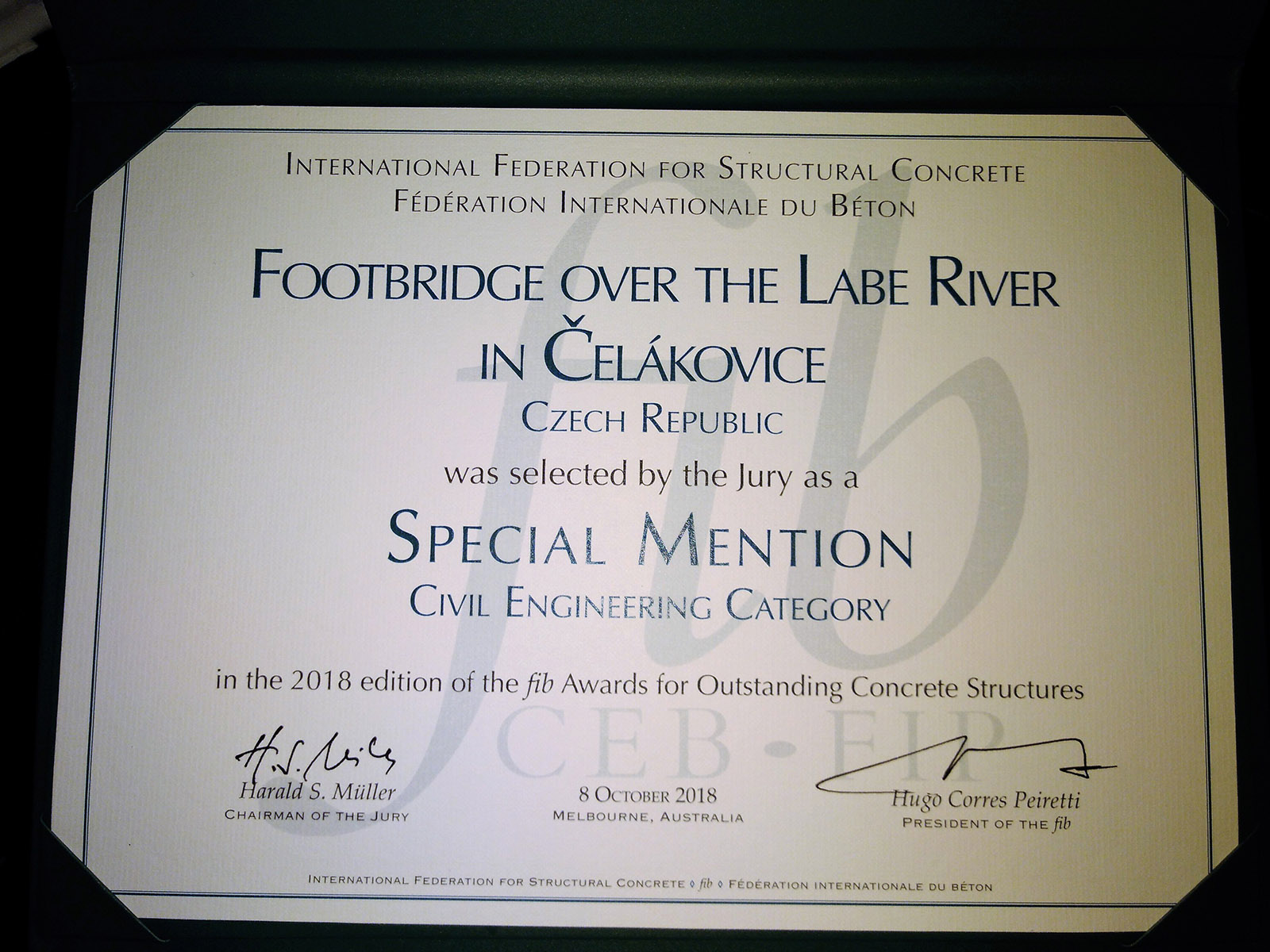 V rámci fib sympozia v australském Melbourne technický náměstek TBG METROSTAV Ing. Robert Coufal, Ph.D. společně s dalšími zástupci realizačního týmu převzal čestné uznání Lávky v Čelákovicích v kategorii inženýrské stavby. Tato ocenění se udělují na kongresu fib a to pouze jedenkrát za 4 roky.