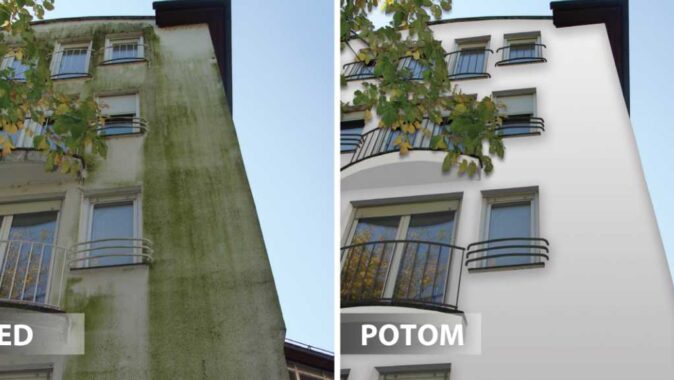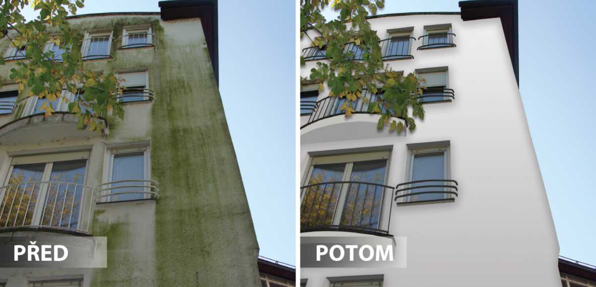 V případě, že již na fasádě máte drobné nazelenalé nebo šedivé skvrny, případně je pokryta souvislou nevzhlednou mapou, doporučujeme následující systémový postup.