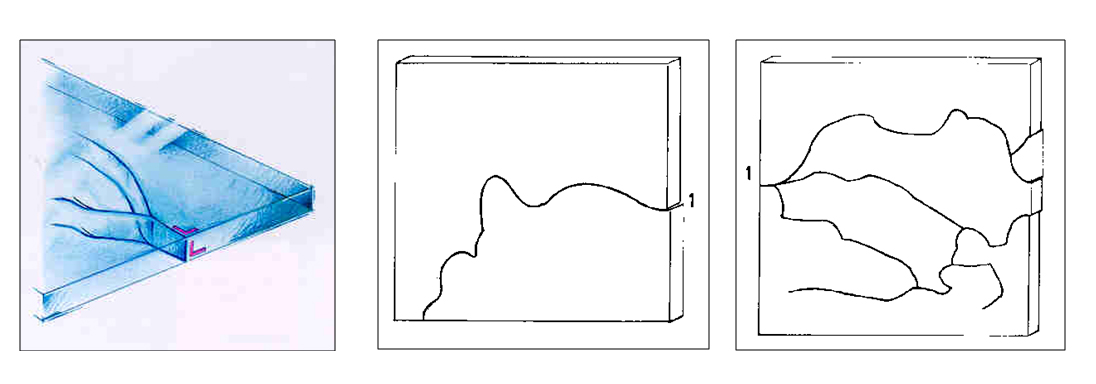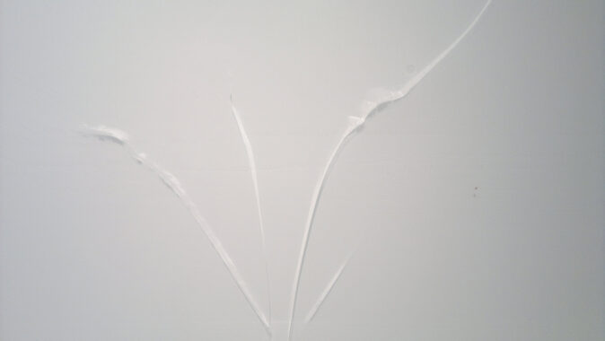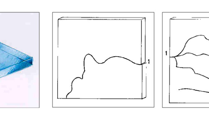 Obr. 1 Příklady prasknutí skel – trhlina může být samostatná, rozvětvená či vějířovitá