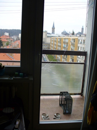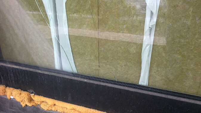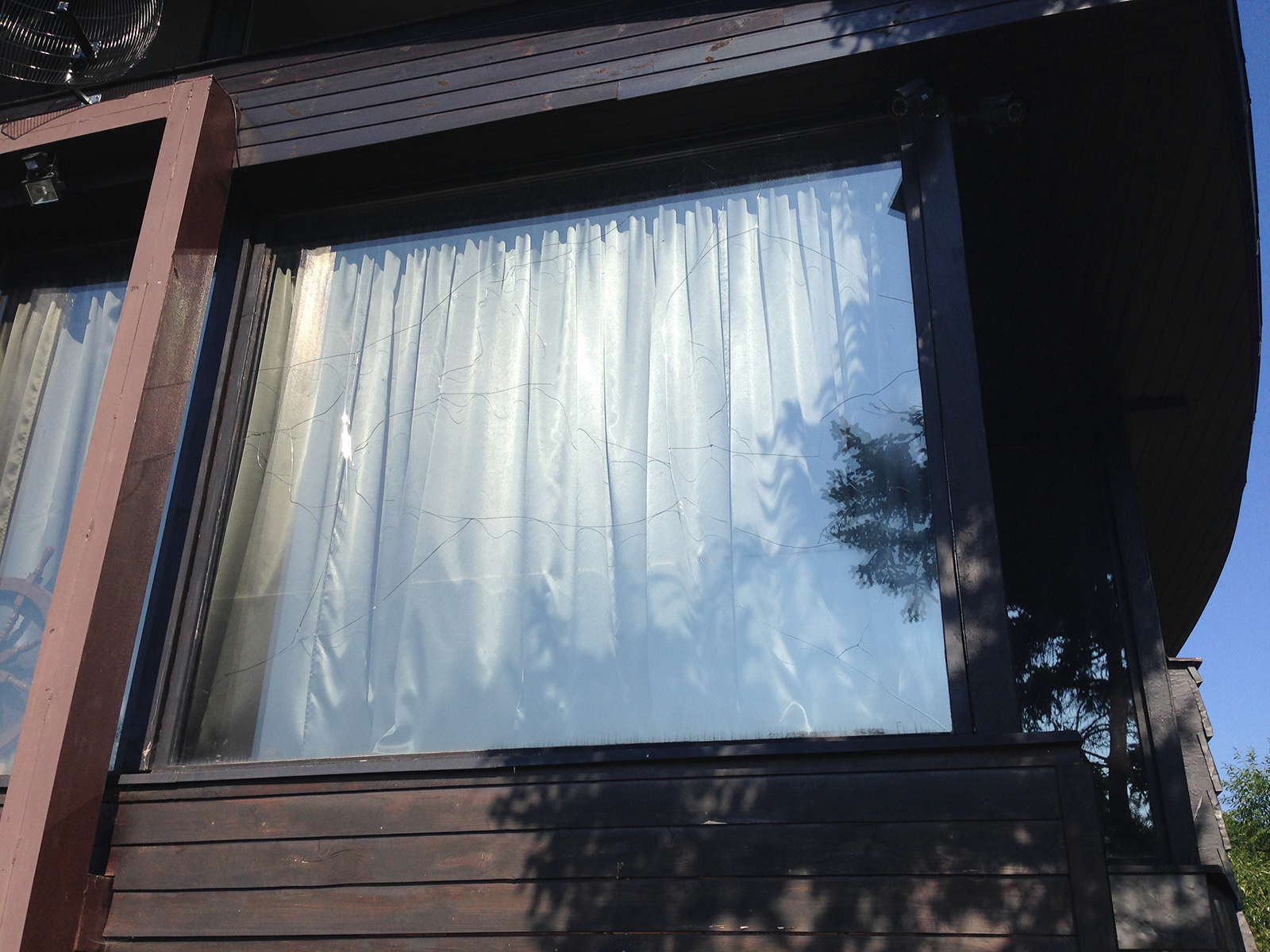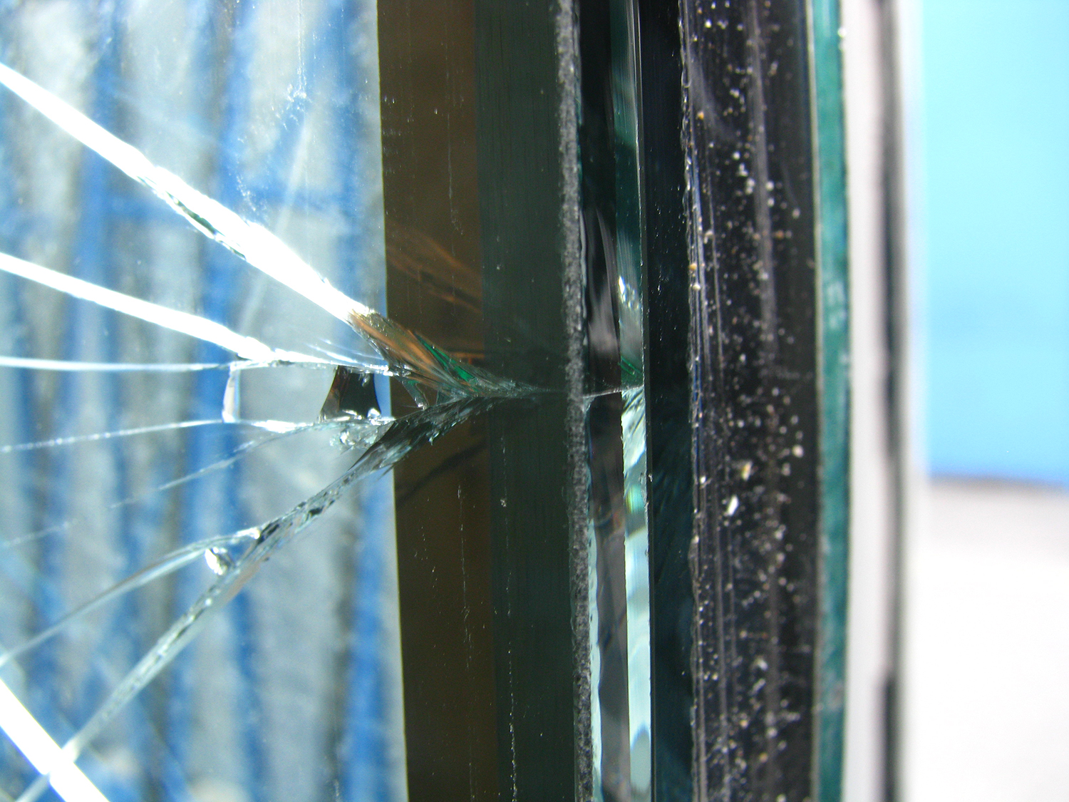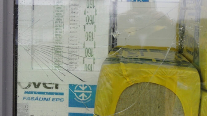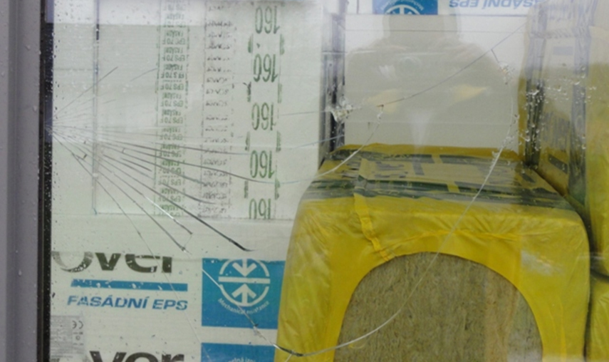 Obr. 5 Prasknutí skla způsobila izolace skladovaná za skleněnou tabulí