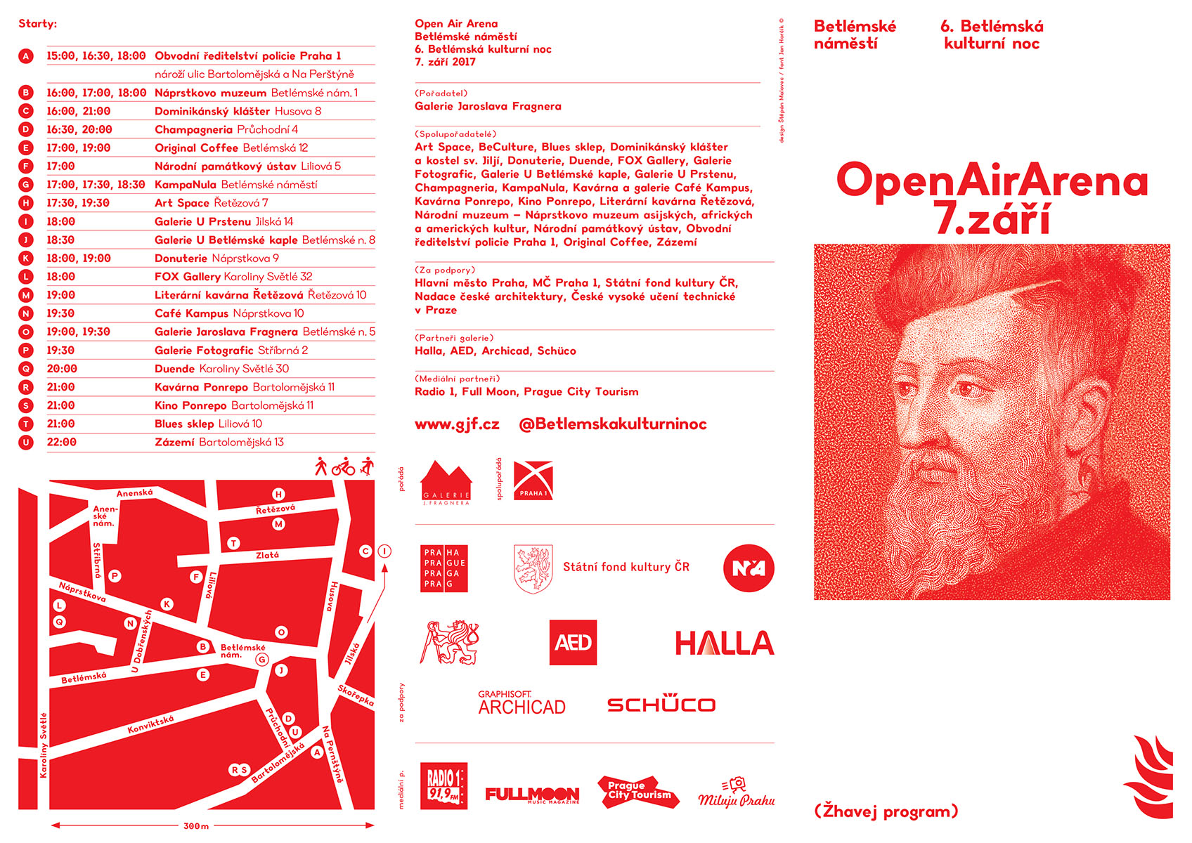 Spolupořadatelé: ART SPACE, BeCulture, Blues Café-Bar, Café Kampus, Dominikánský klášter a kostel sv. Jiljí, Donuterie, duende, FOX Gallery, Galerie Fotografic, Galerie U Betlémské kaple, GALERIE U PRSTENU, Champagneria, KampaNula, Literární kavárna Řetězová, Náprstkovo Muzeum Asijských, Afrických A Amerických Kultur, Národní památkový ústav, Obvodní ředitelství policie Praha 1, Original Coffee, Kavárna Ponrepo, Ponrepo,