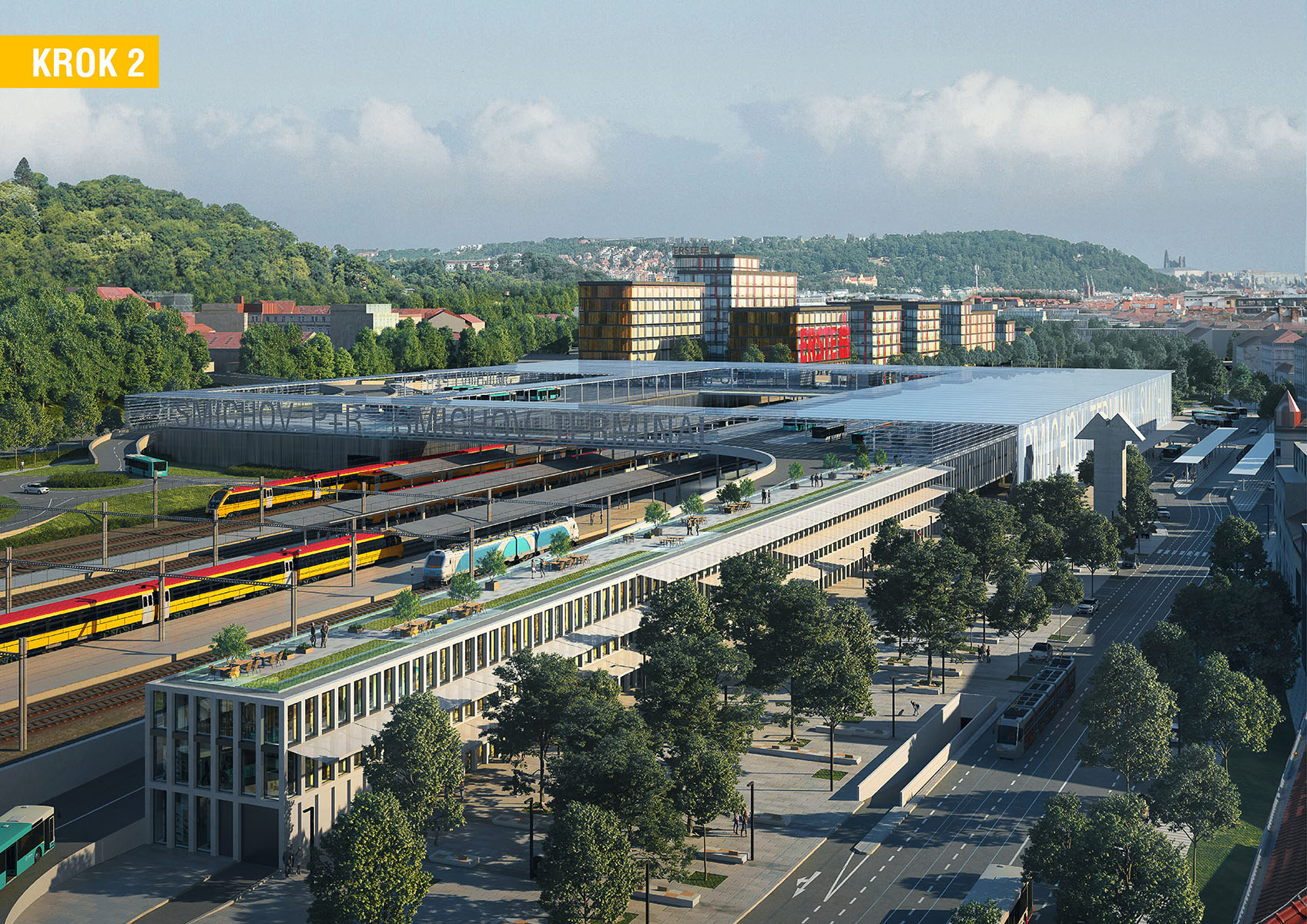 včetně autobusového terminálu na střeše nové budovy. Rovněž vzniknou