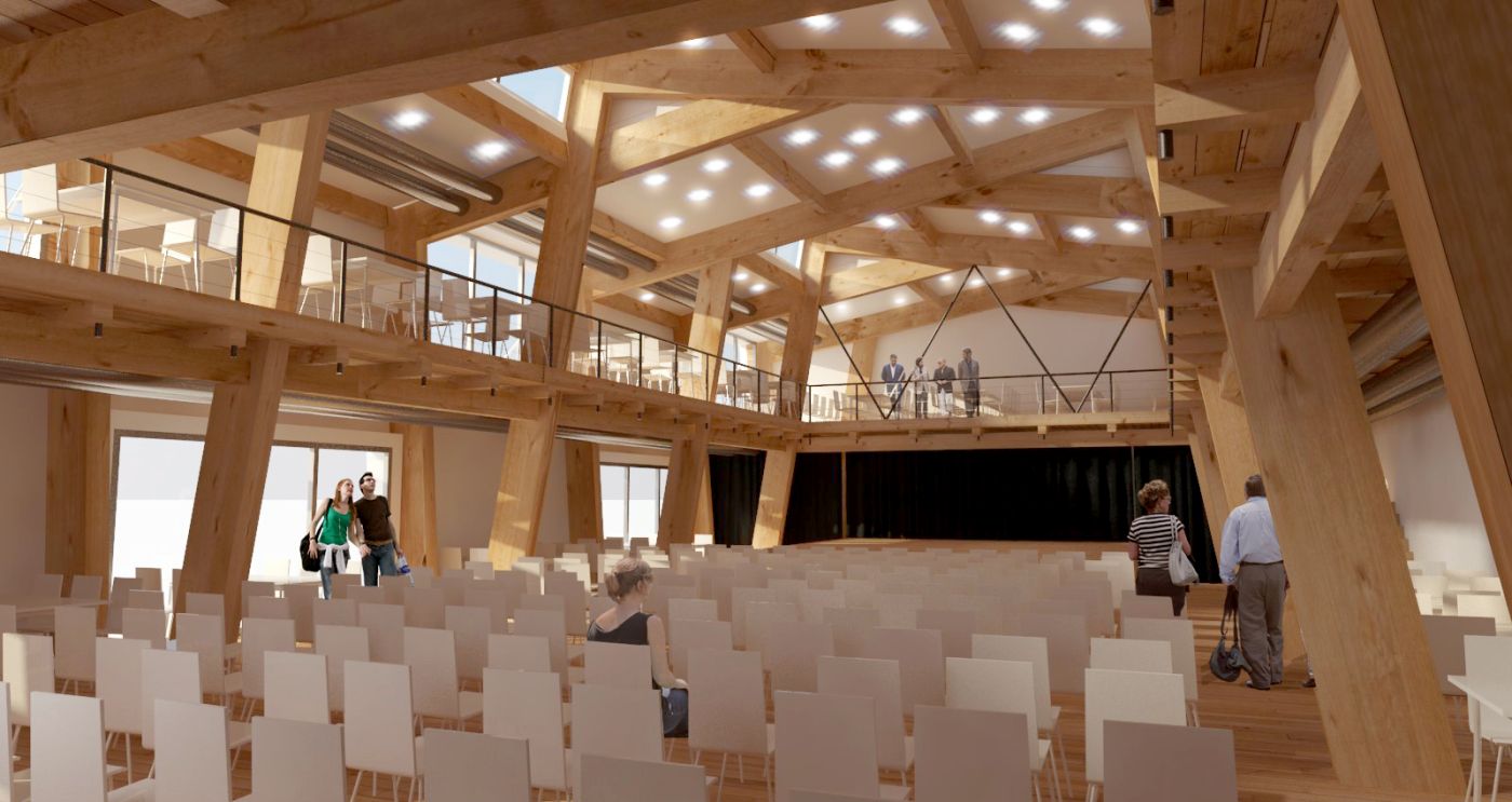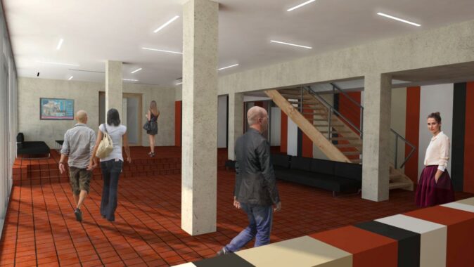 Novostavba kulturního domu v Ratíškovicích je v těsné blízkosti obecní hospody. Budou v něm dva víceúčelové sály a kuželna. Prvotní návrh vznikl již před devíti lety, v roce 2014 byly práce obnoveny a v lednu 2015 dokončena realizační dokumentace.