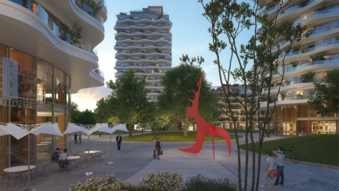 projektem Evy Jiřičné, mj. tří výškových stometrových budov – „architektonického