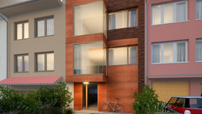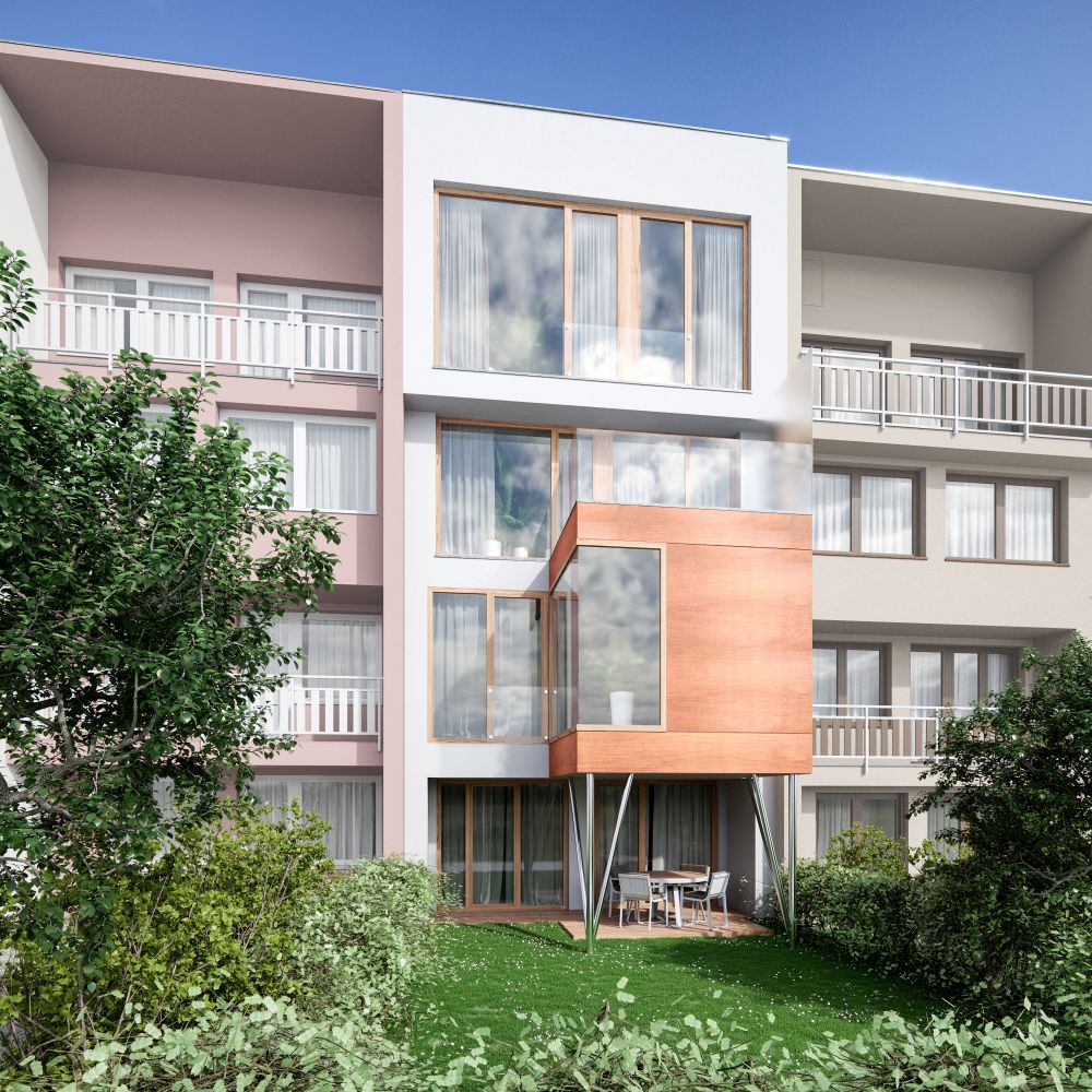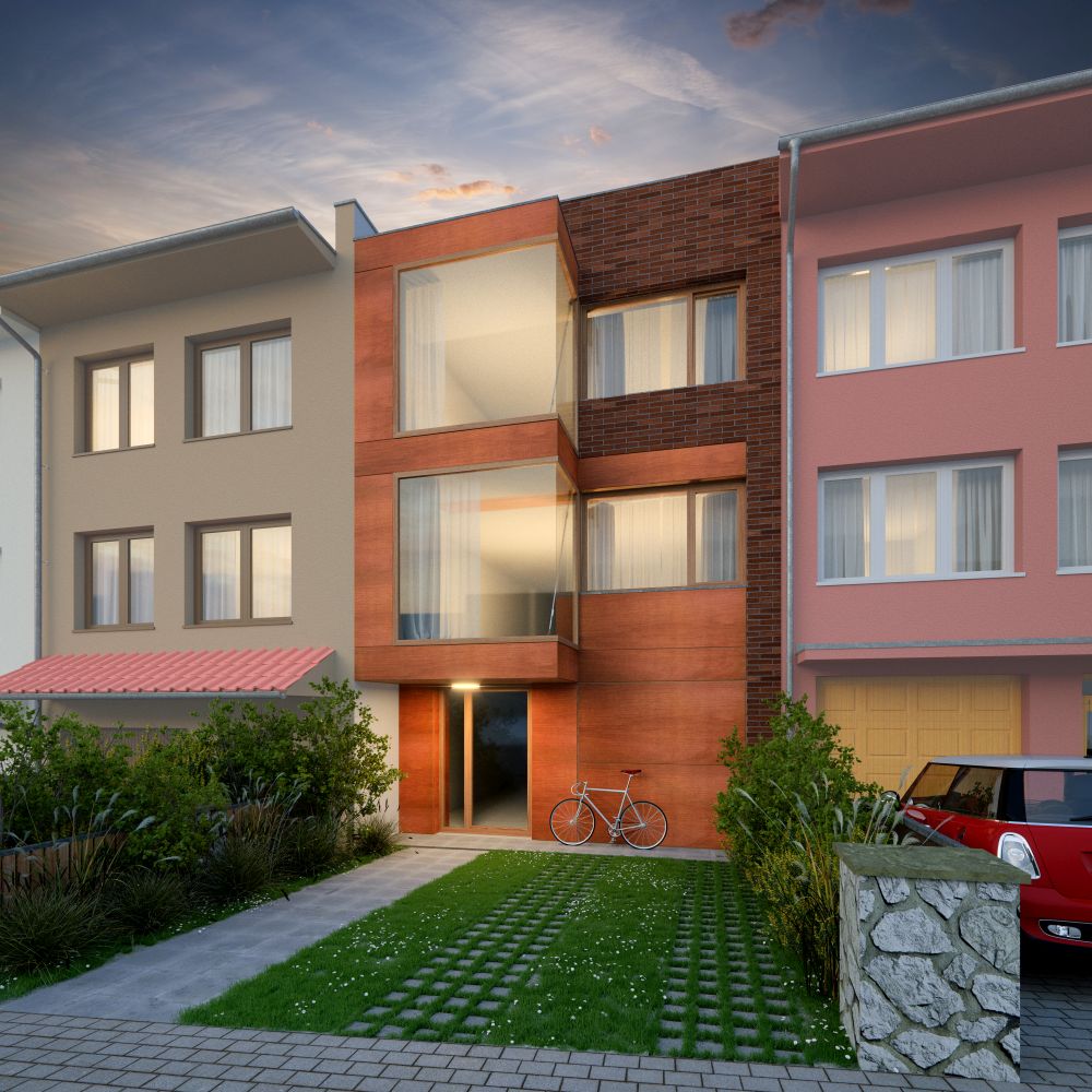 Dům je umístěn v okrajové části města na vyvýšeném místě s pěknými výhledy na dominanty Brna i okolní přírodu. Řadová zástavba typových rodinných domů leží na mírně svažitém terénu.