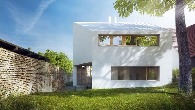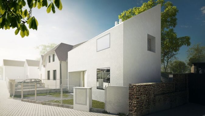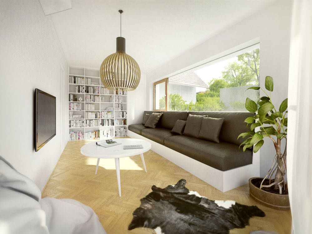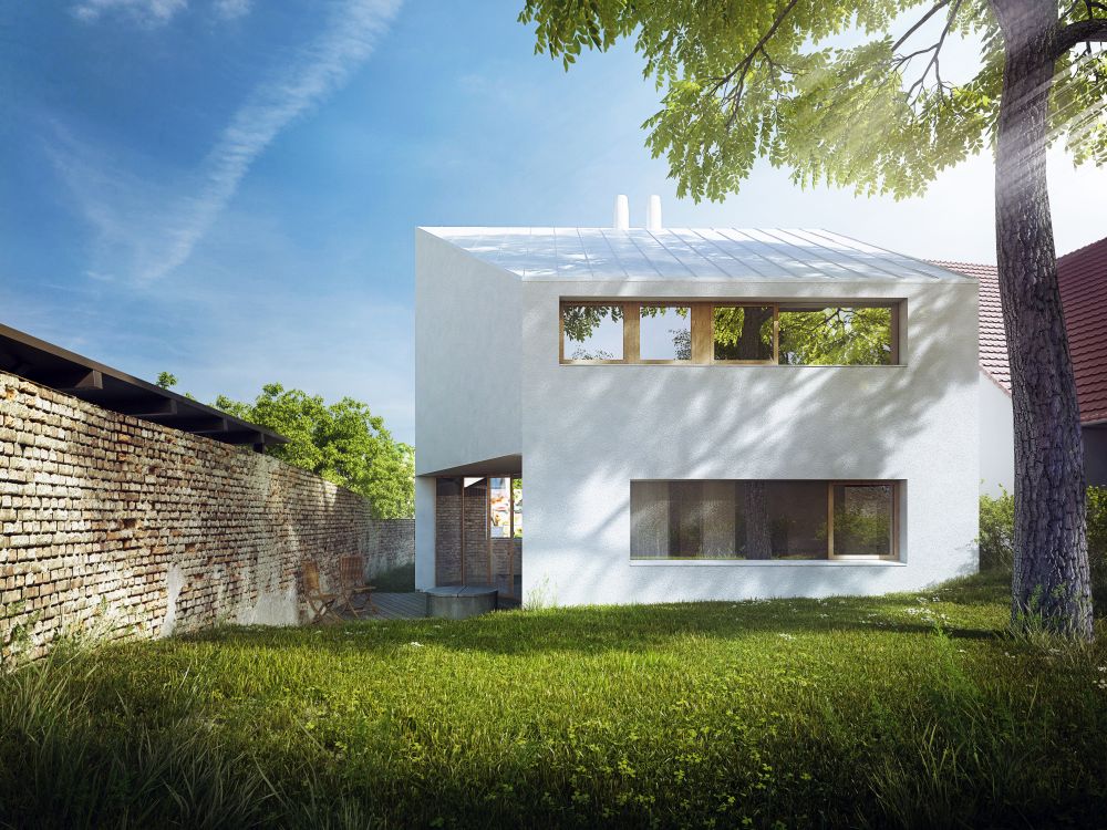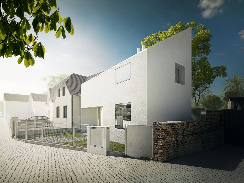 Klient: Tříčlenná rodina s pragmatickými požadavky na nové bydlení. Jedním z požadavků: „Když budeme potřebovat větší rodinný vůz, nechceme být omezeni ve výběru dle limitů pozemku.“ To se dá zcela jistě pochopit…