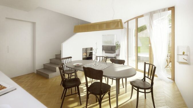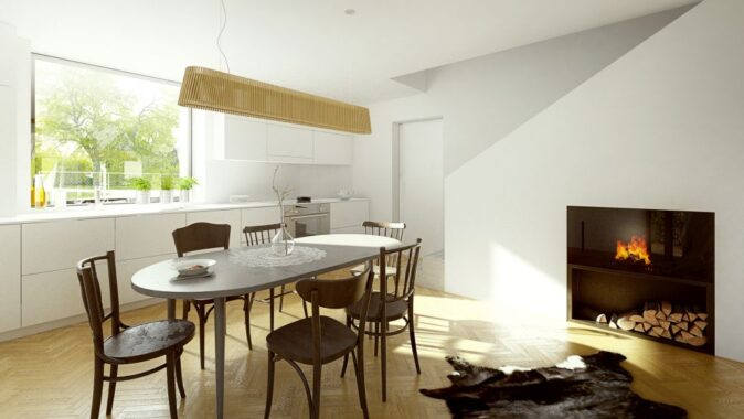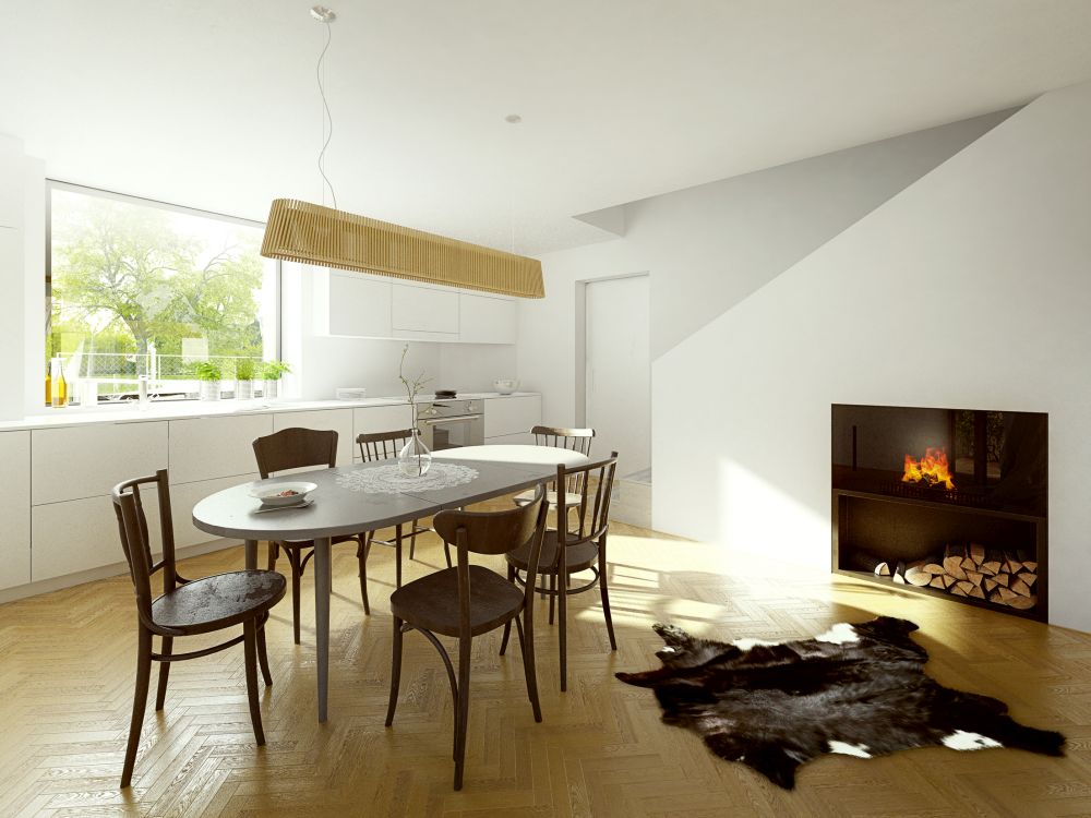 Vážně pokládáte za vhodné, aby jediný vstup do domu, sloužící nejen |domácím|, ale i návštěvám, procházel otevřenou kuchyní, za zády toho, kdo zrovna přepásán zástěrou cosi kutí u pracovní linky? Taky proporce mezi plochou ložnic v patře dimenzovaných jako menší taneční sály a naopak docela skromně vyvinutou hlavní obytnou plochou v přízemí, jejíž využitelnost je ještě navíc komplikována uspořádáním ve tvaru nepravidelně vyvinutého rohlíku, je opravdu netradiční… 🙂
