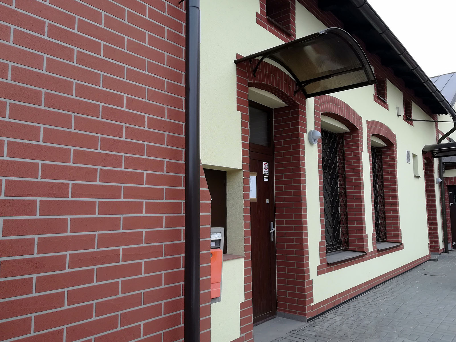 Autoři rekonstrukce vyřešili zdobnou fasádu důmyslným způsobem: „Chtěli jsme zachovat autentický ráz domu s režnými prvky, ale také splnit náročné požadavky na tepelněizolační komfort,“ vysvětluje Petr Čečotka ze stavební firmy VAPES CE, s.r.o., která získala zakázku kompletně na klíč. Ve snaze zachovat všechny původní fasádní prvky a za účelem sjednocení technického řešení fasády se firma rozhodla namísto fasádních pásků klinker vsadit na imitaci lícového zdiva pomocí speciálních kreativních omítek Cemix. Ty se na fasádu nanáší přes velké samolepící šablony. Stejná metoda byla ostatně aplikována na vedlejší bytový dům č. 410 (původně tzv. dělnický dům) a obec se pro zmiňované řešení doslova nadchla.