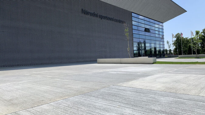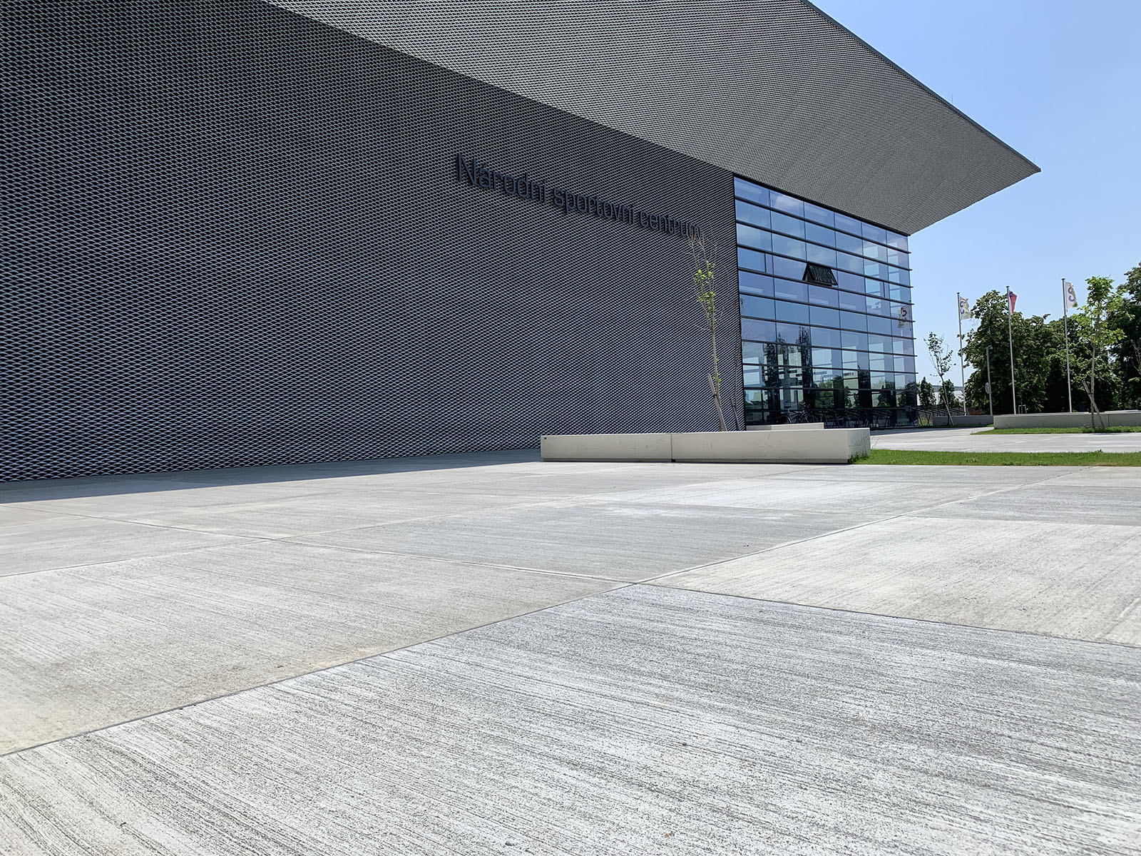 výsledný záměr optické rozdělení betonové vstupní plochy před halou do systému