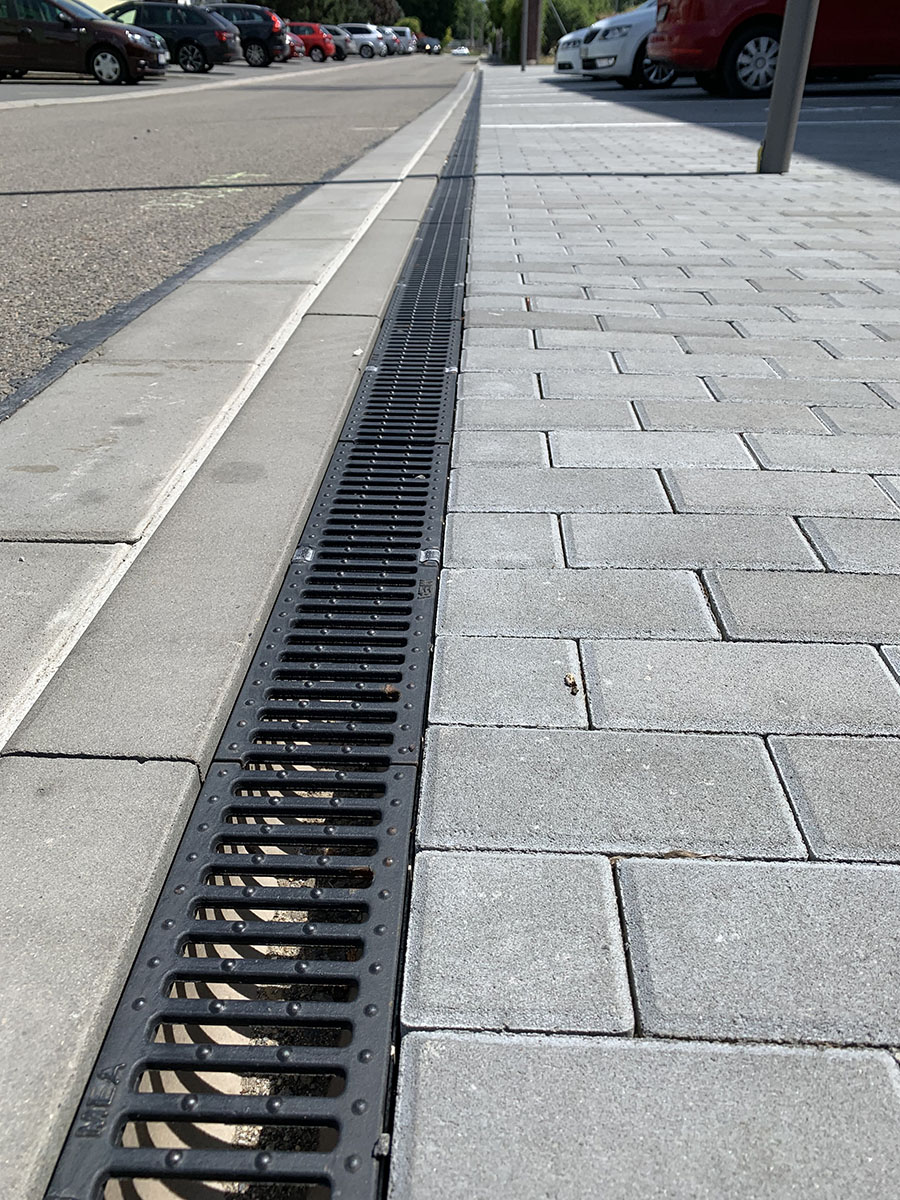 bylo odvodněno žlaby MEA TL1000 s litinovými rošty. S použitím těchto