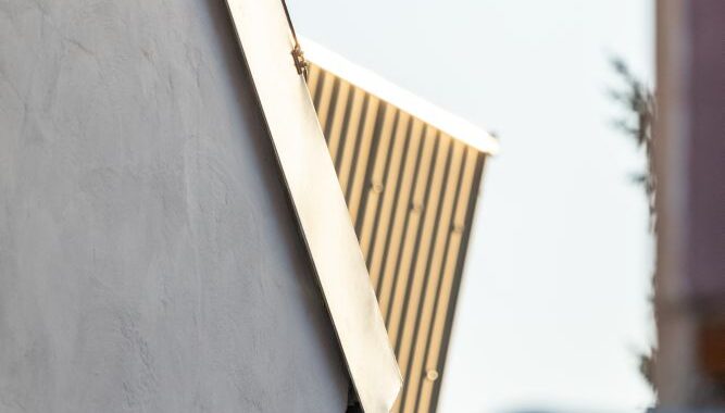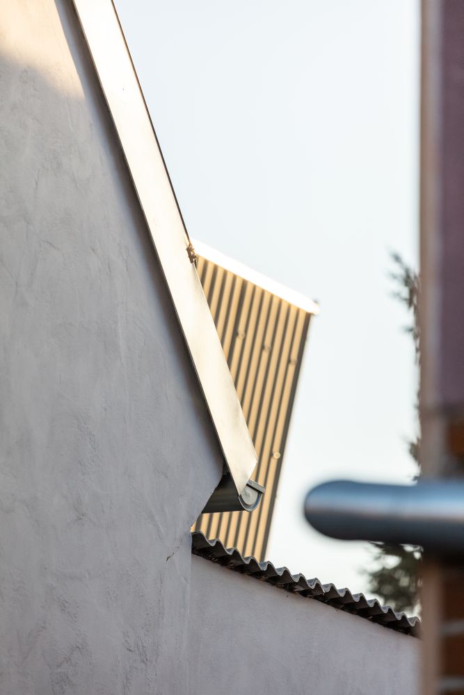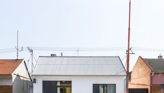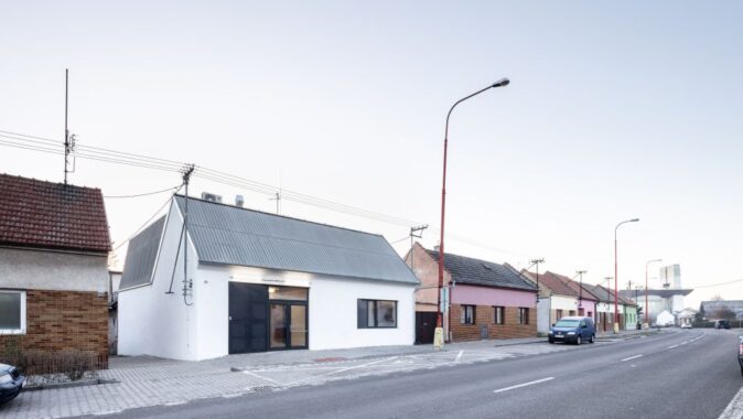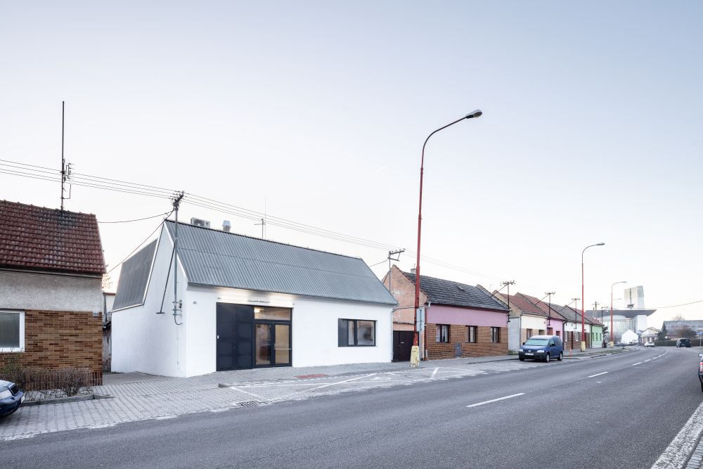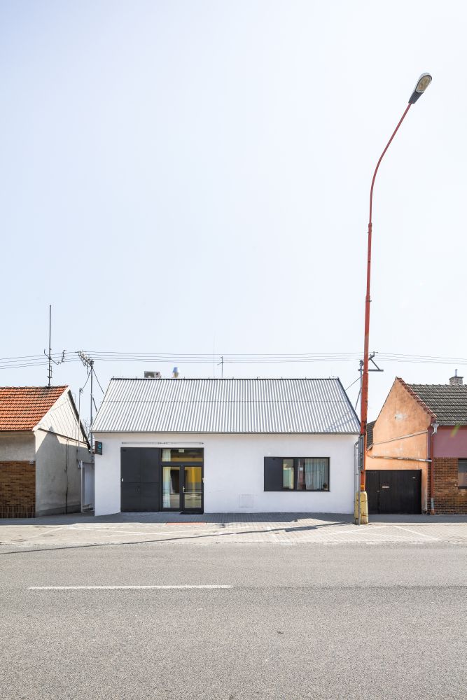 Několikrát přestavovaný dům zabíral celý pozemek, který vznikl oddělením od většího stavení. Vnější podoba nového domu vychází z místní uliční zástavby s domy na půdorysu tvaru ve tvaru písmene L. Přestavba proto zachovala stávající uliční trakt servisu. Obnovením historické stopy dvorního křídla vnikl na pozemku dvorek potřebný pro osvětlení vnitřních místností.