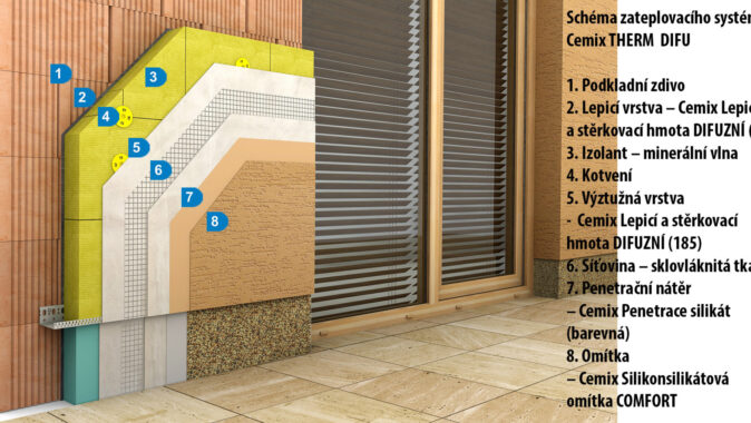 Mezi takové produkty se řadí i novinka od společnosti LB Cemix, špičkový zateplovací systém s certifikátem ETA – Cemix THERM DIFU. Jde o jeden z nejprodyšnějších zateplovacích systémů současného trhu, který je určen jak pro novostavby, tak pro rekonstruované domy. O vysoké paropropustnosti systému vypovídá i fakt, že ho lze aplikovat na čerstvé novostavby se zabudovanou vlhkostí (není potřeba delší technologická přestávka) nebo na starší objekty se zbytkovou vlhkostí ve zdivu po provedených hydroizolacích.
