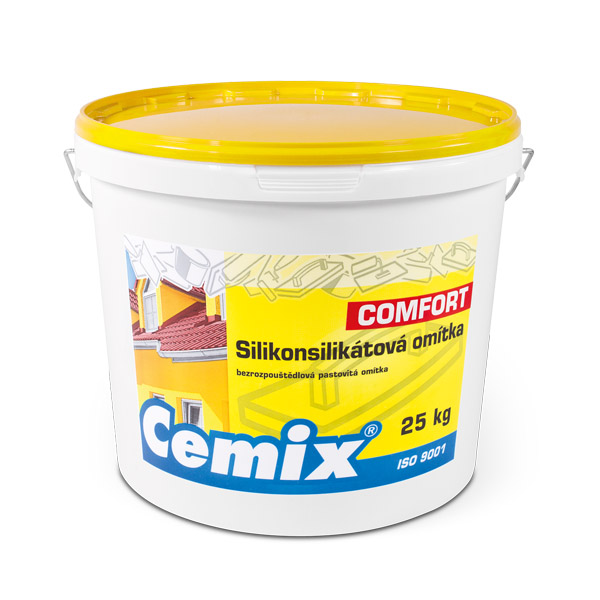 Finální vrstvu nového zateplovacího systému tvoří strukturální Cemix Silikonsilikátová omítka COMFORT. Díky velmi nízké hodnotě difuzního odporu se tato omítka běžně používá i v sanačních systémech Cemix. Omítka je díky svému pH a schopnosti regulovat vlhkost na povrchu trvale přirozeně chráněna proti růstu řas a plísní. Je výjimečná i samočistícím efektem: odolá zašpinění i v prostředí s velkou prašností a se znečištěným ovzduším. Omítka je k dispozici v široké nabídce barevných odstínů a struktur a zákazníci tak mohou fasádu svého domu pojednat velmi variabilně a kreativně. Všechny zmiňované přednosti prodlužují estetickou životnost fasády.