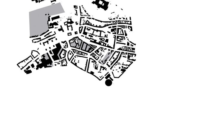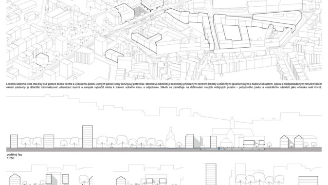 řešeného území pak utváří tři základní prvky: dostavba bloku uprostřed území, nově