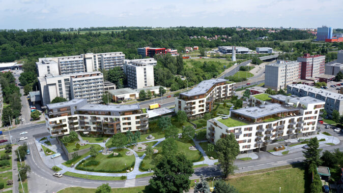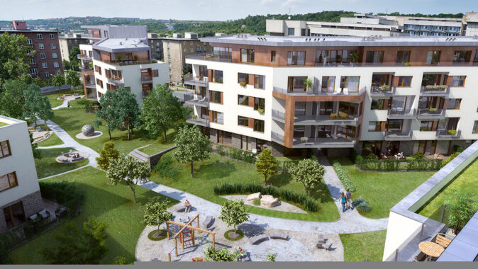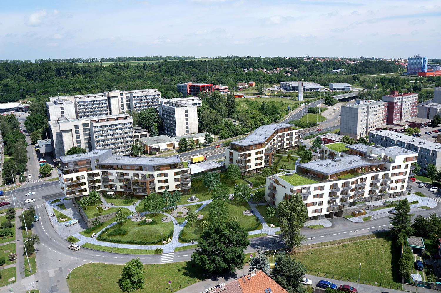 s výhledy do 3000 m2 velkého parku. Ten JRD vybuduje ve vnitřním prostoru mezi jednotlivými