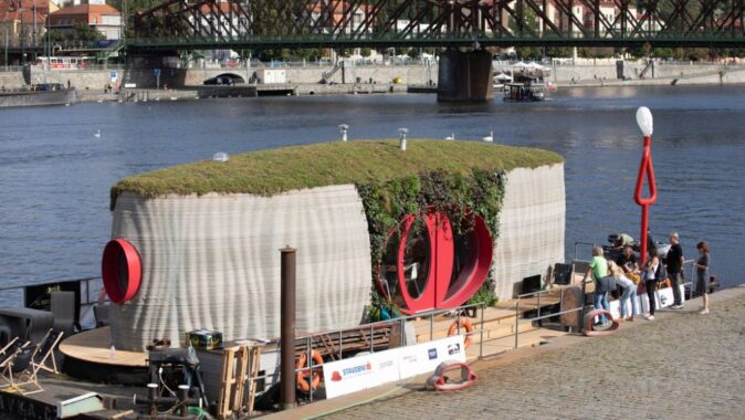 Přesun domu o hmotnosti 30 tun a délce 13,5 metrů do Prahy trval deset hodin. Nejprve byl rozdělen na tři části a na speciálním návěsu dopraven do přístavu v Holešovicích, kde byl zkompletován na pontonu. Následně se přes tři plavební komory dostal na Střelecký ostrov, kde byl představen veřejnosti. Do konce září zde bylo možné navštívit tuto první 3D tištěnou plovoucí stavbu na světě.