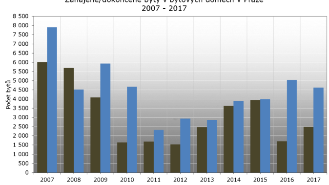 na pražském trhu s byty je opravdu závažná. V roce 2017 zde bylo dokončeno celkem 4 623