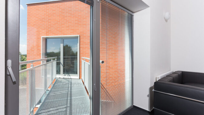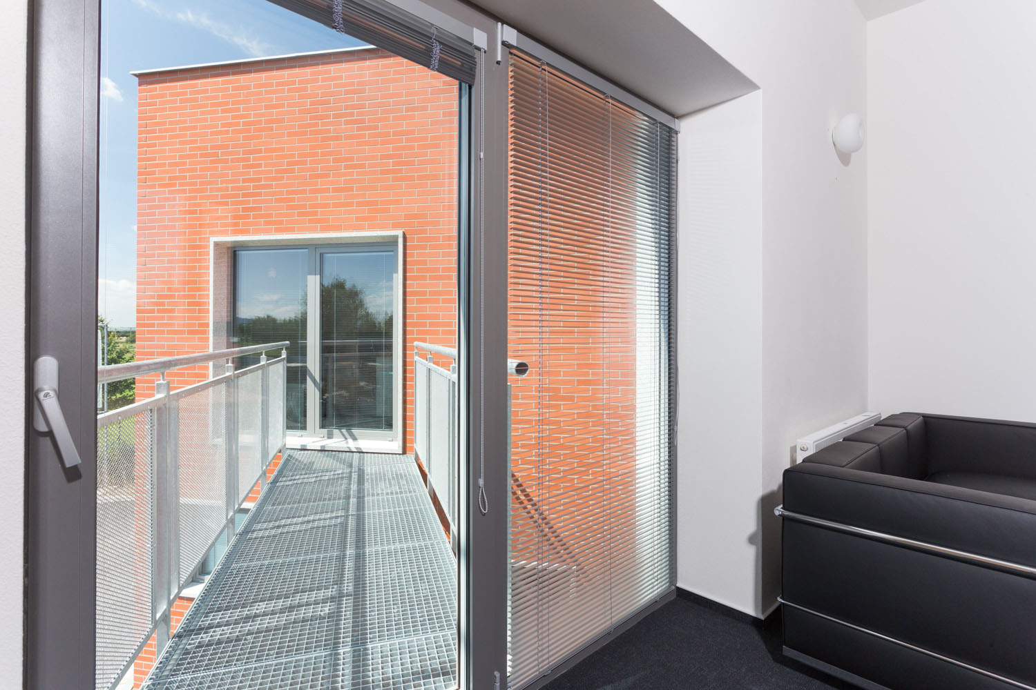v ostrých úhlech. Veškeré otvory do fasád jsou umístěny pouze směrem do