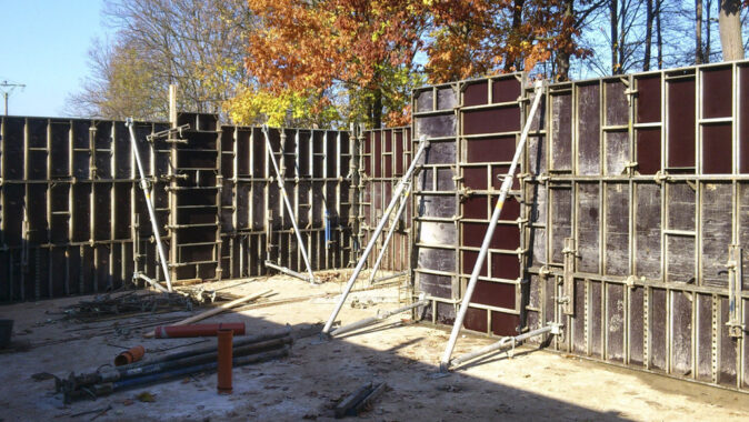 12) Betonáž stěn Při betonáži stěn je nutné (stejně jako u běžných konstrukcí) zabránit padání betonu z velké výšky. Se zvyšující se výškou padání betonu roste riziko rozdělení betonu a tvorba hnízd. Vibrace se provádí běžnými ponornými vibrátory a intenzita musí být přizpůsobena konzistenci betonu.