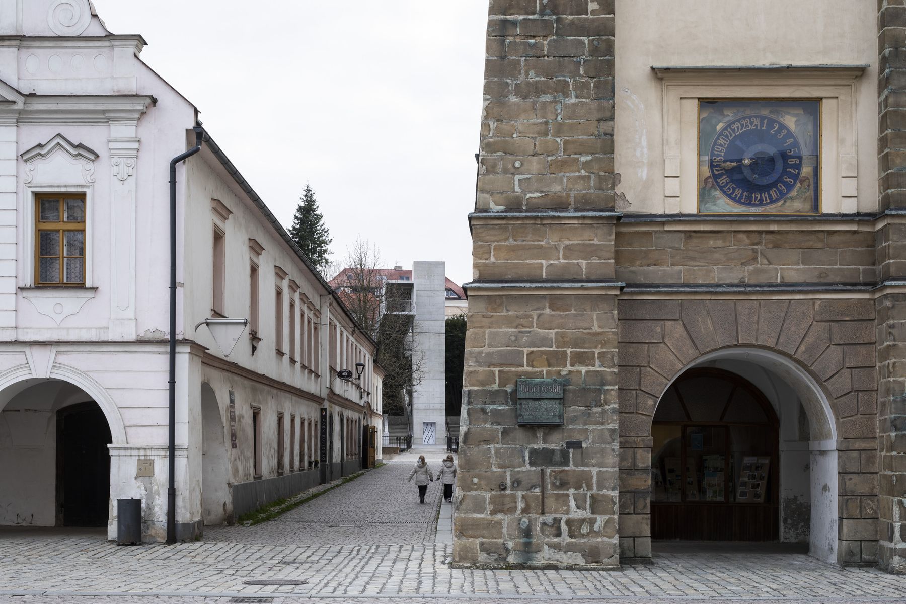 vycházející ze Smetanova náměstí. Hlavní pylon, v němž je ukryta výtahová