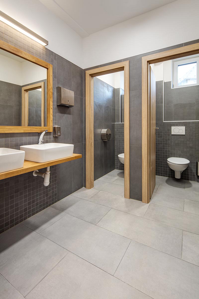 sociální prostory pro personál, kde našly uplatnění slinuté neglazované