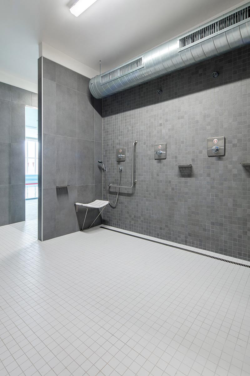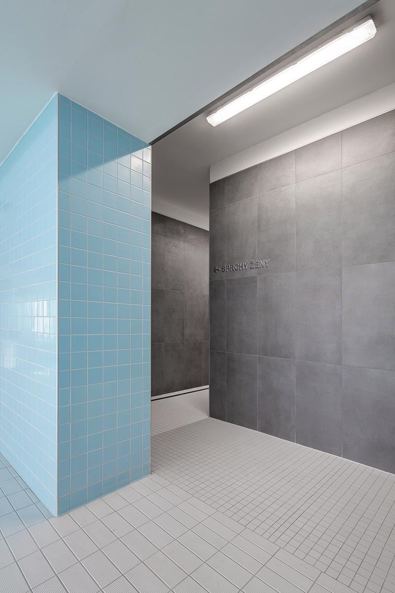 rekonstrukce se dočkaly i podlahy kolem bazénové vany, sprchy a toalety,