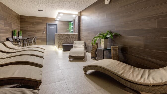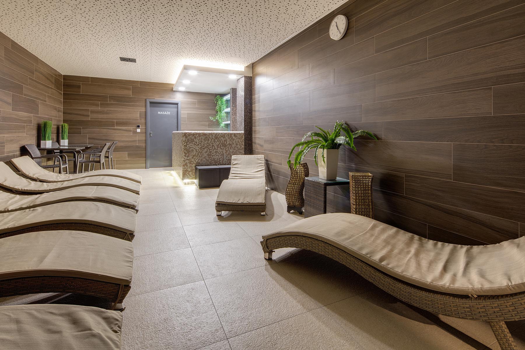 interiéry saunového světa určené k relaxaci a prohřátí architekt zvolil