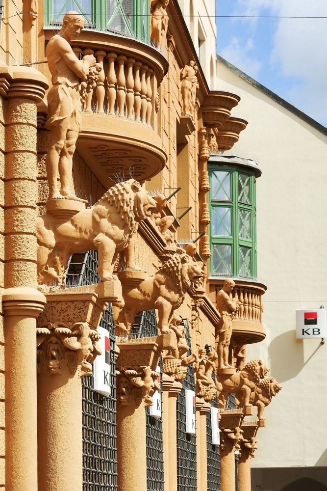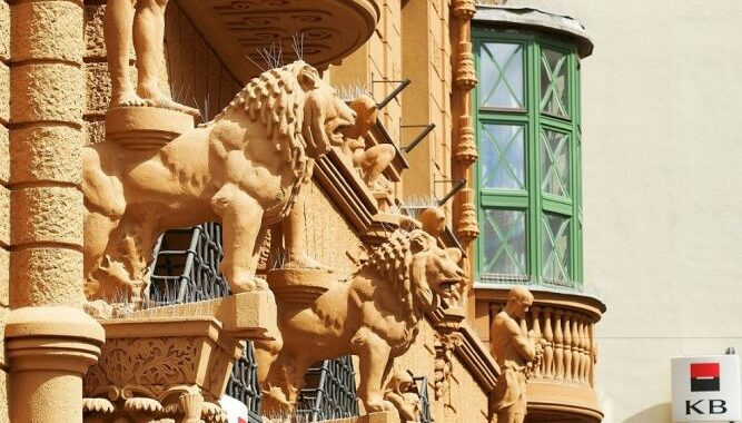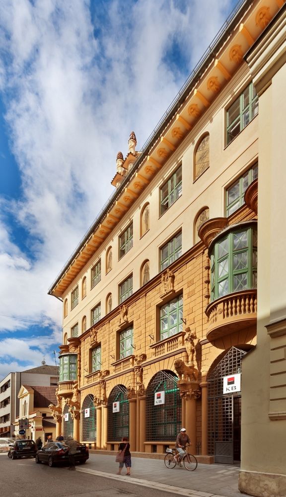 Stavební činnost spojená s rekonstrukcí budovy, která je umístěna v samém centru jihočeské metropole v ulici Krajinská, se realizovala za provozu pobočky banky jak v denních, tak i některých nočních hodinách. Týkala se zejména výměny rozvodů a dodávek rozvodu chlazení a vodovodních a elektro přípojek. V rámci exteriéru došlo na opravu a restaurování historických maleb, kamenných a kovových soch a restaurování původních štukových omítek. Tyto štukové omítky se obnovovaly rovněž v interiéru. Investiční náklady projektu činily 25 milionů korun.
