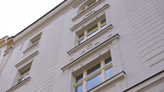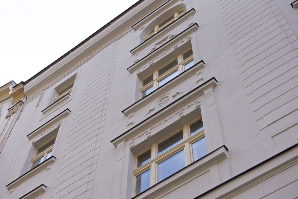 fasáda je orientována na sever, dvorní na jih. V domě se nachází 11 bytových