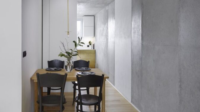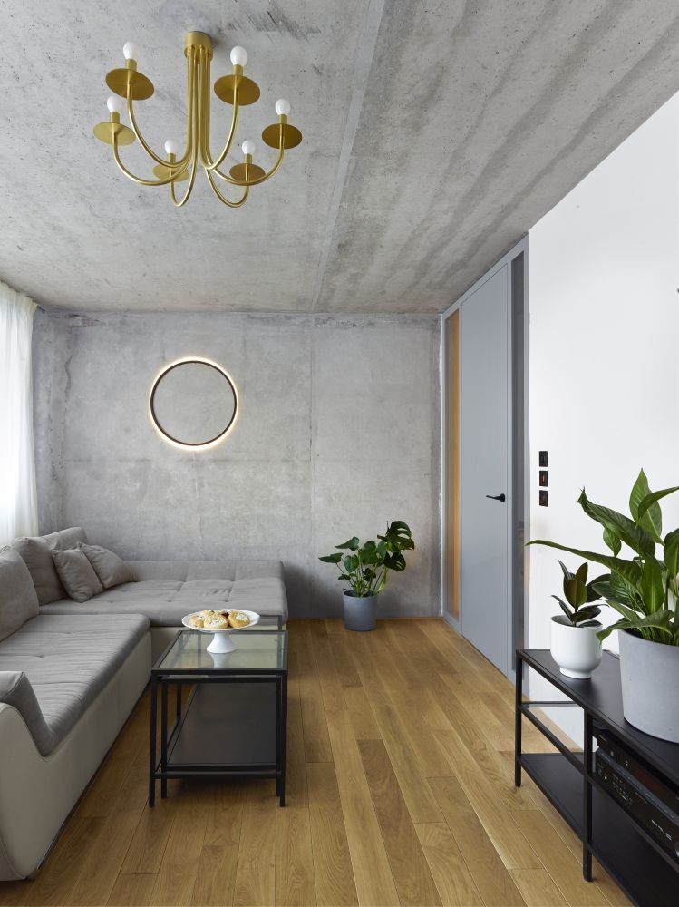 Byt se nachází ve čtyřpatrovém panelovém domě, zadáním byla jeho rekonstrukce pro čtyřčlennou rodinu. Cílem bylo vytvořit nadčasový a osobitý interiér. S majiteli byla takřka ideální spolupráce – nechali mě tvořit, jednotlivé prvky jsme společně probírali a nacházeli ideální cestu mezi designem a praktičností. Jejich požadavkem bylo využít přírodní materiály, byt opticky zvětšit a provzdušnit.