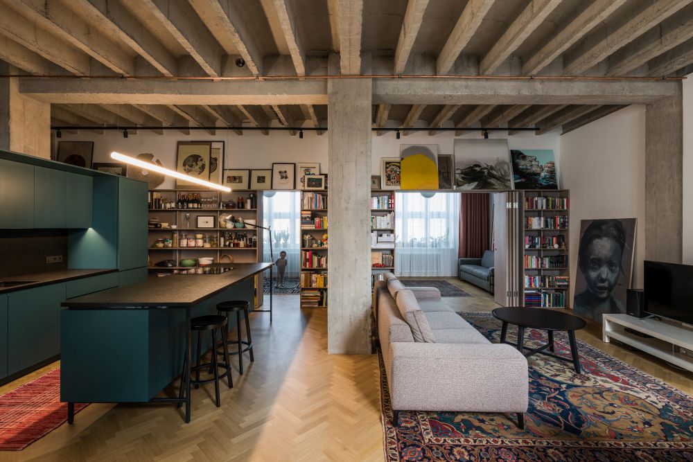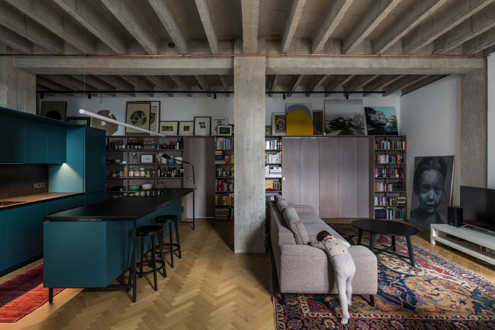 s masivním železobetonovým skeletem. Žebírkové stropy sice byly skryté pod