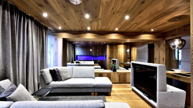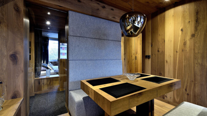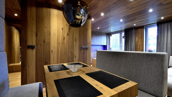 V luxusní horskou chalet hodnou alpských letovisek proměnil architekt Milan Jirouš interiér tuctového panelákového bytu v Krkonoších. Základem materiálového minimalismu se stalo dřevo, konkrétně dubové podlahové krytiny Kährs, doplněné sklem a textilním čalouněním. Puristické pojetí interiéru díky originálnímu využití dřeva a dalším promyšleným detailům (televize zabudovaná v zádech čalounění jídelní lavice, zrcadla opticky násobící prostor atd.) vytvořilo dokonale útulné bydlení, lákavé snad pro všechny lidské smysly – úchvatné na pohled, přirozené na dotek, poklidné, vonící.