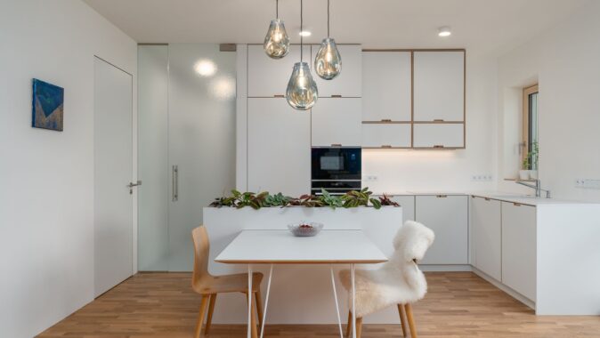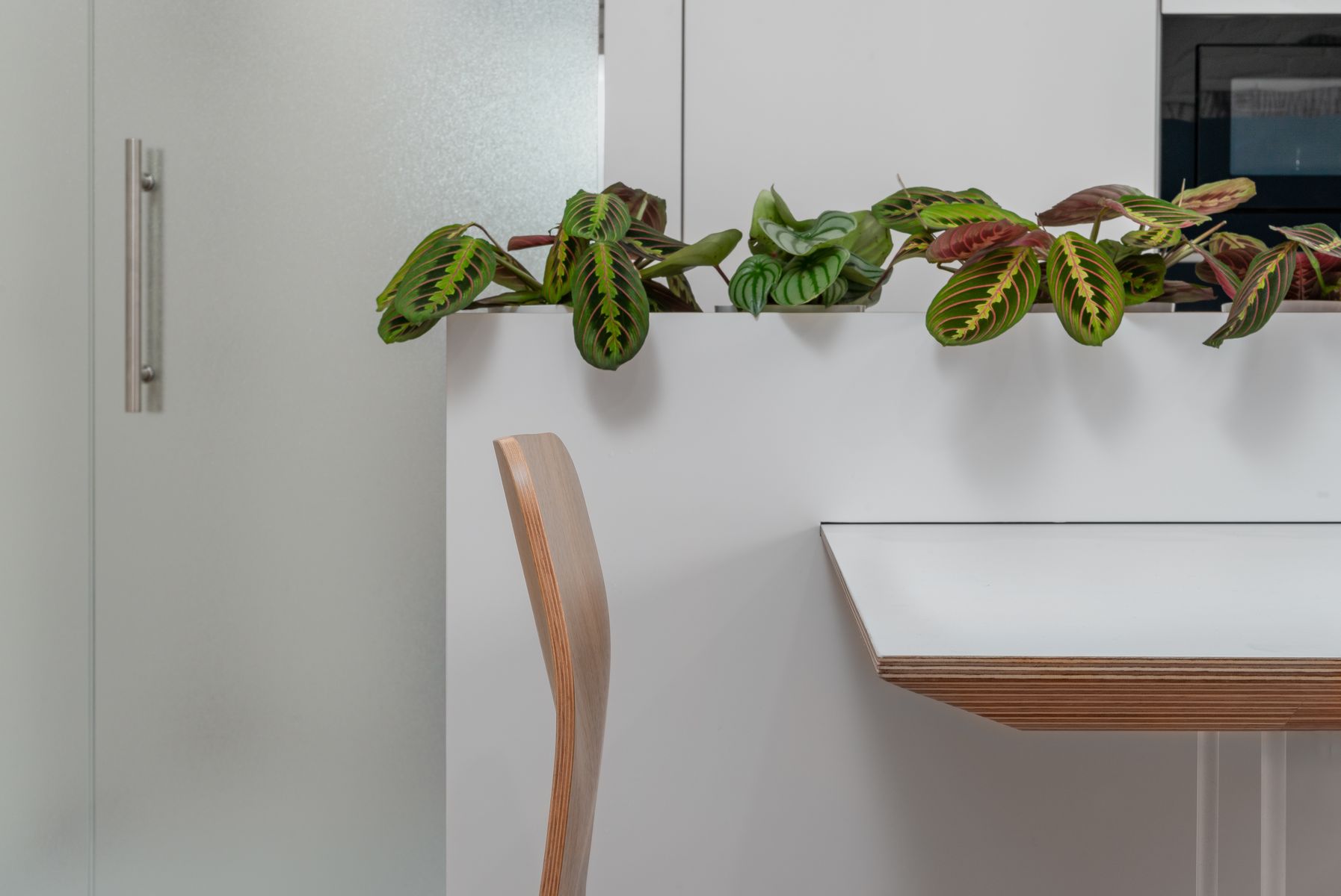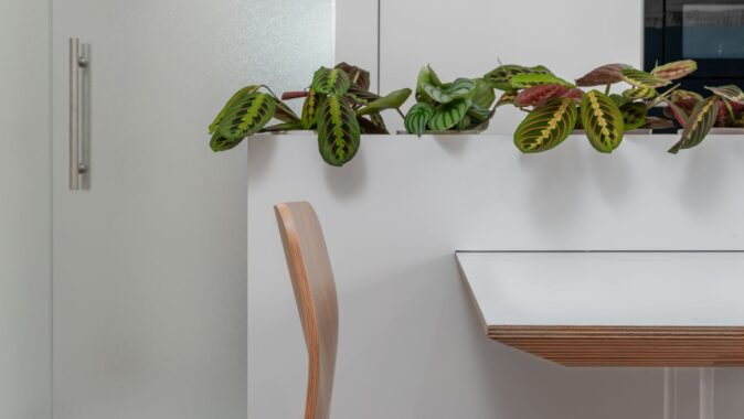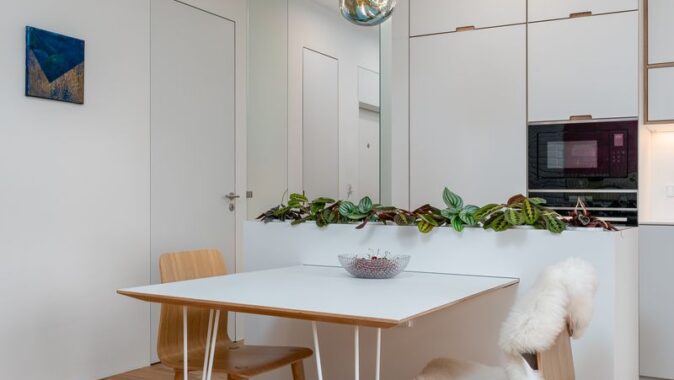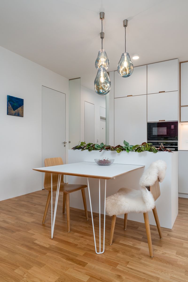 místnosti a je použita i na desku jídelního stolu a parapety.