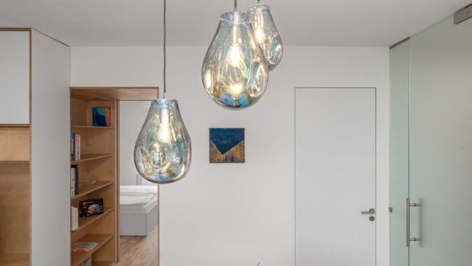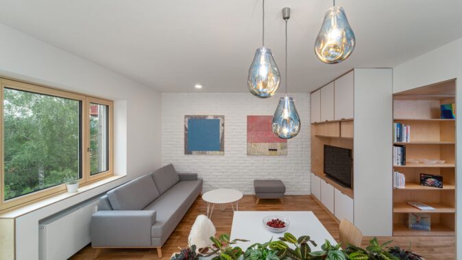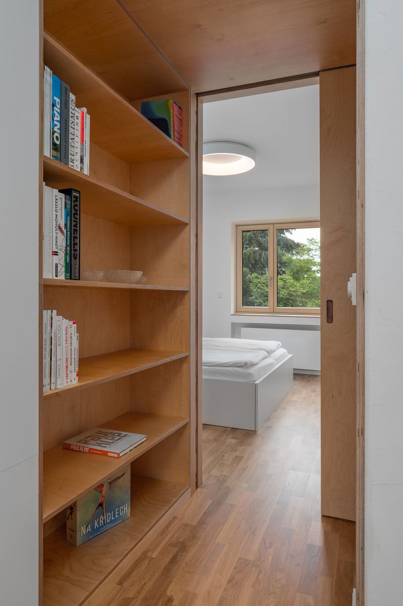 u knihovny. Výrazným rysem bytu je propojení architektury,