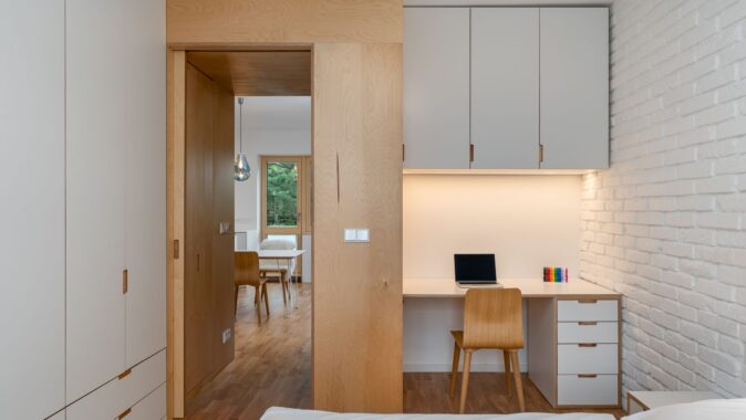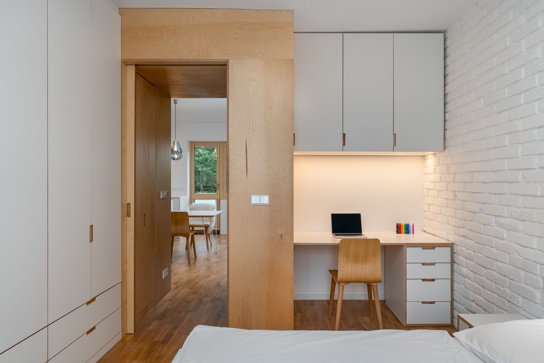 stala překližka, která se objevuje v každé místnosti. Tato levnější alternativa