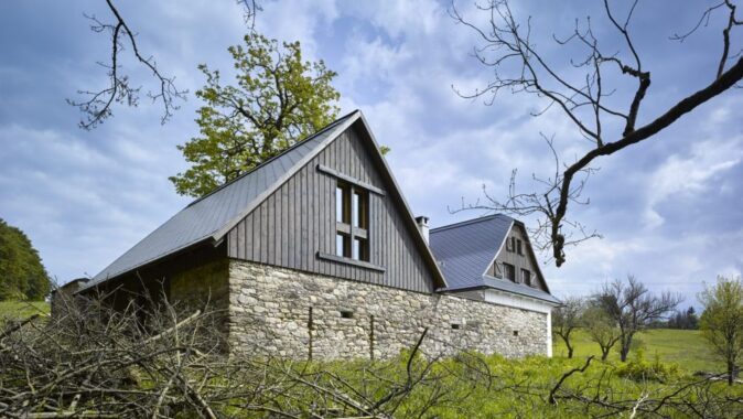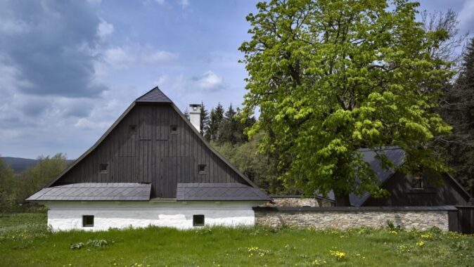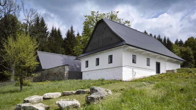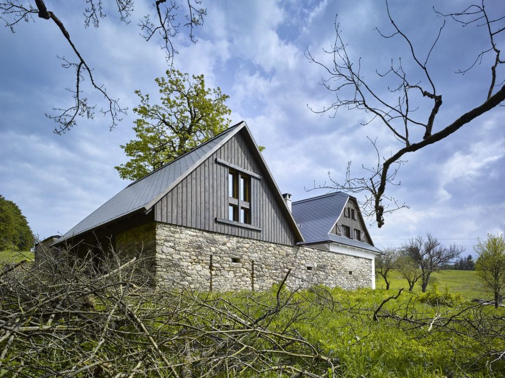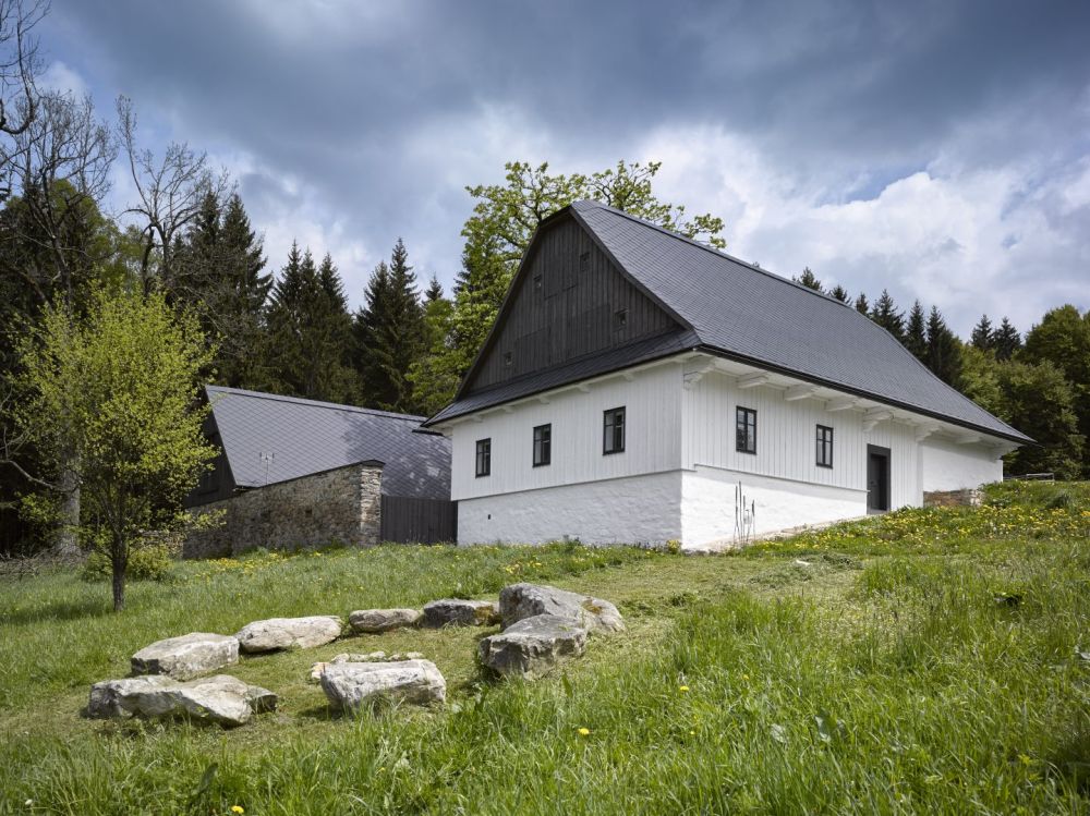 Tradiční chalupu s obytným stavením, bývalým chlévem a samostatnou stodolou vymezují kamenné zdi, které vytvářejí nádvoří s nádherným kaštanem. Před rekonstrukcí byly stavby velmi zanedbané, stodola napůl zbouraná. Projekt byl zpracován ve všech fázích, ale sloužil hlavně pro jednání s úřady. Projektové práce probíhaly z různých důvodů po celou dobu výstavby. Záměrem bylo zachovat z původních konstrukcí pokud možno všechno, co se dalo,