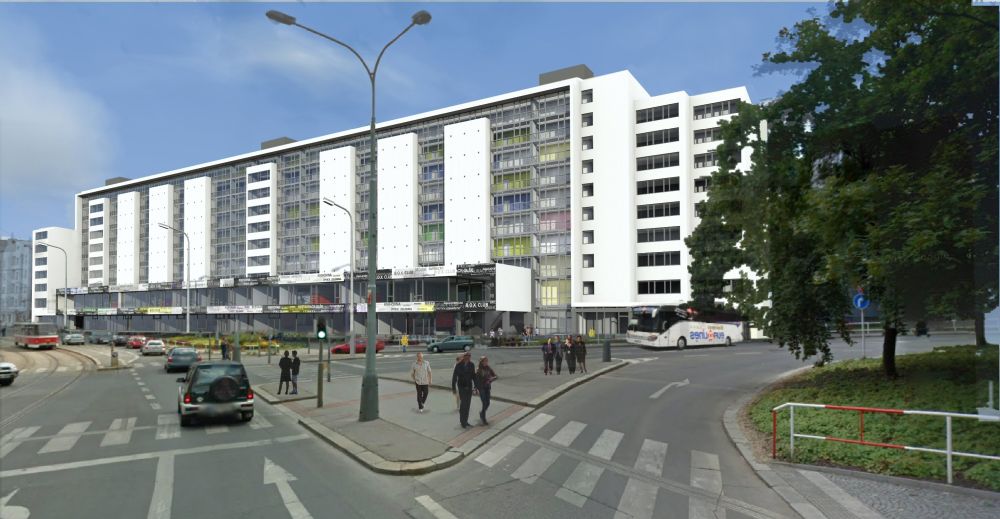 vnitřní obvodový plášť nahradí prosklenou fasádou. Příznivý vliv na exteriér