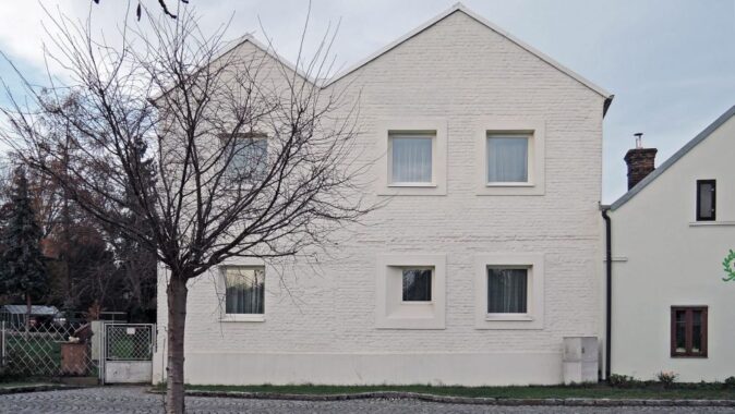 Určujícím impulzem pro návrh bylo uvědomění, že dům svou velikostí a měřítkem odpovídá tak jeden a půl násobku okolních staveb. A tak jsme z něho udělali dva domky, větší a menší. To nám také napovědělo původní členění oken. Dům má do návsi dva štíty. Členění „na dva domky“ se propisuje v oknech, štítech, ale také ve vnitřním uspořádání. Menší domek je reprezentativní částí. Je zde hala, obývací pokoj a pracovna. Větší naplňuje rodinné zázemí. Západní fasáda a hospodářské kůlny vymezují směrem do zahrad dvorek se starou rozeklanou třešní. Tímto směrem se dům otevírá vstupy a širokými okny. Vše sedí stále nalajnováno logikou celé stavby.
