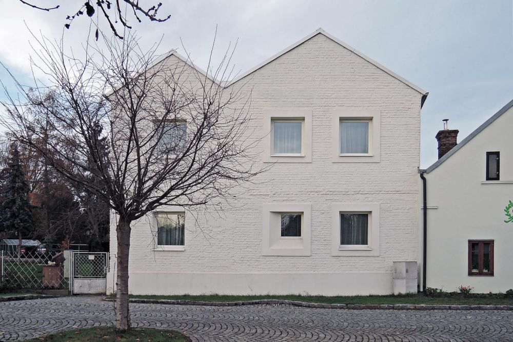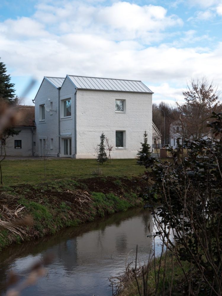 Určujícím impulzem pro návrh bylo uvědomění, že dům svou velikostí a měřítkem odpovídá tak jeden a půl násobku okolních staveb. A tak jsme z něho udělali dva domky, větší a menší. To nám také napovědělo původní členění oken. Dům má do návsi dva štíty. Členění „na dva domky“ se propisuje v oknech, štítech, ale také ve vnitřním uspořádání. Menší domek je reprezentativní částí. Je zde hala, obývací pokoj a pracovna. Větší naplňuje rodinné zázemí. Západní fasáda a hospodářské kůlny vymezují směrem do zahrad dvorek se starou rozeklanou třešní. Tímto směrem se dům otevírá vstupy a širokými okny. Vše sedí stále nalajnováno logikou celé stavby.