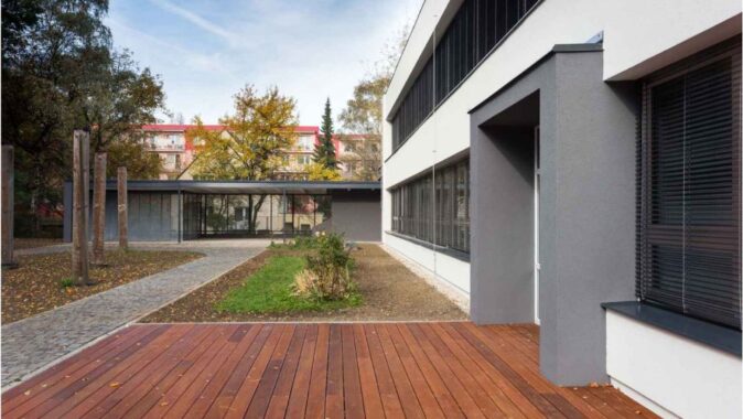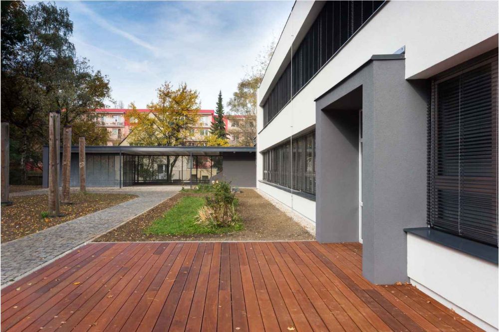 Architektonický výraz návrhu a následná rekonstrukce vychází z původního charakteru výstavby, kde je možno vysledovat určité prvky tzv. miesovské architektury. Jedná se o velkorysé prosklení, pásová okna, subtilní ocelový přístřešek, otevřený koncept zahrady apod. Důležitým úkolem v rámci urbanismu města se ukázalo odstranění předního oplocení a otevření veřejného prostoru k ulici.