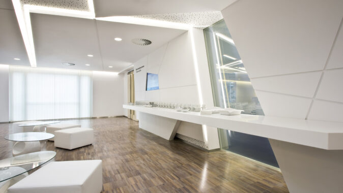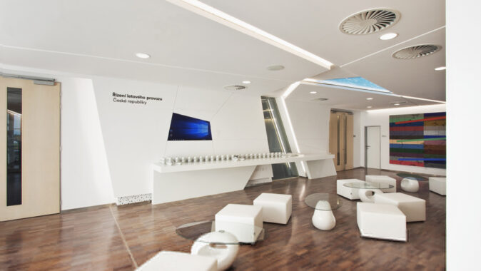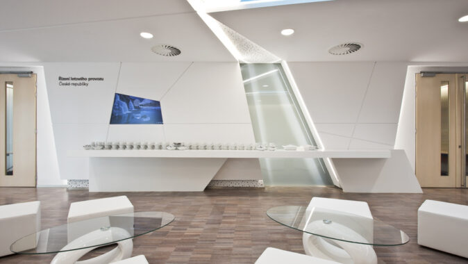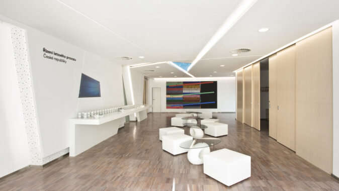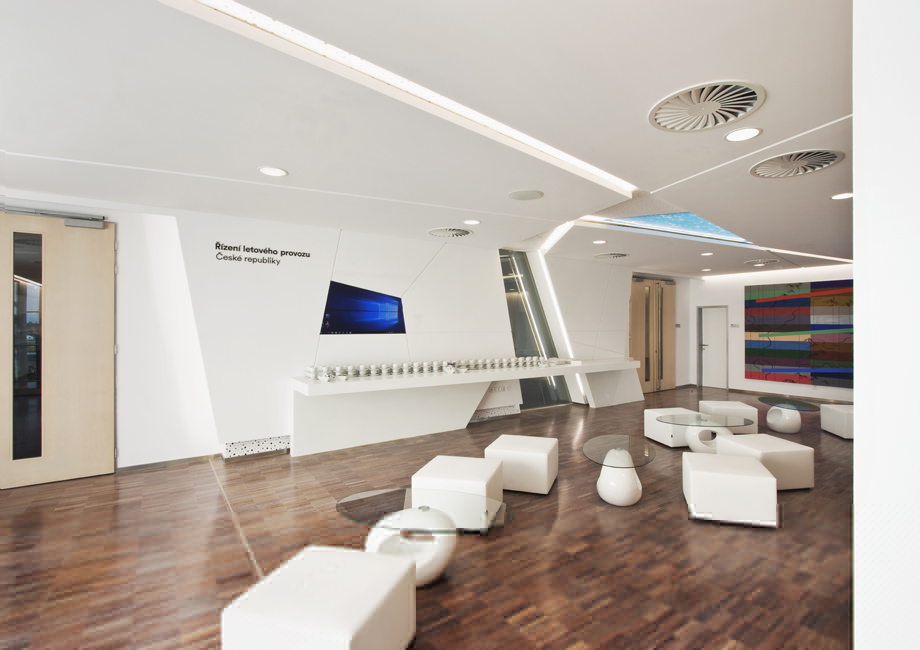 Z hlediska provozu a funkce byl původní sál řešen příznivě včetně akustických opatření a kapacity. Problémem byl fádní interiér bez jakéhokoli osobního vztahu k subjektu zadavatele. Předmětem projektu byly úpravy prostoru konferenčního sálu, předsálí a technických místností v budově Řízení letového provozu. Sál se nachází v druhém nadzemním podlaží objektu, hlavní vstup je z atria. Součástí úprav byly renovace povrchů a vnitřního zařízení v sále a předsálí.