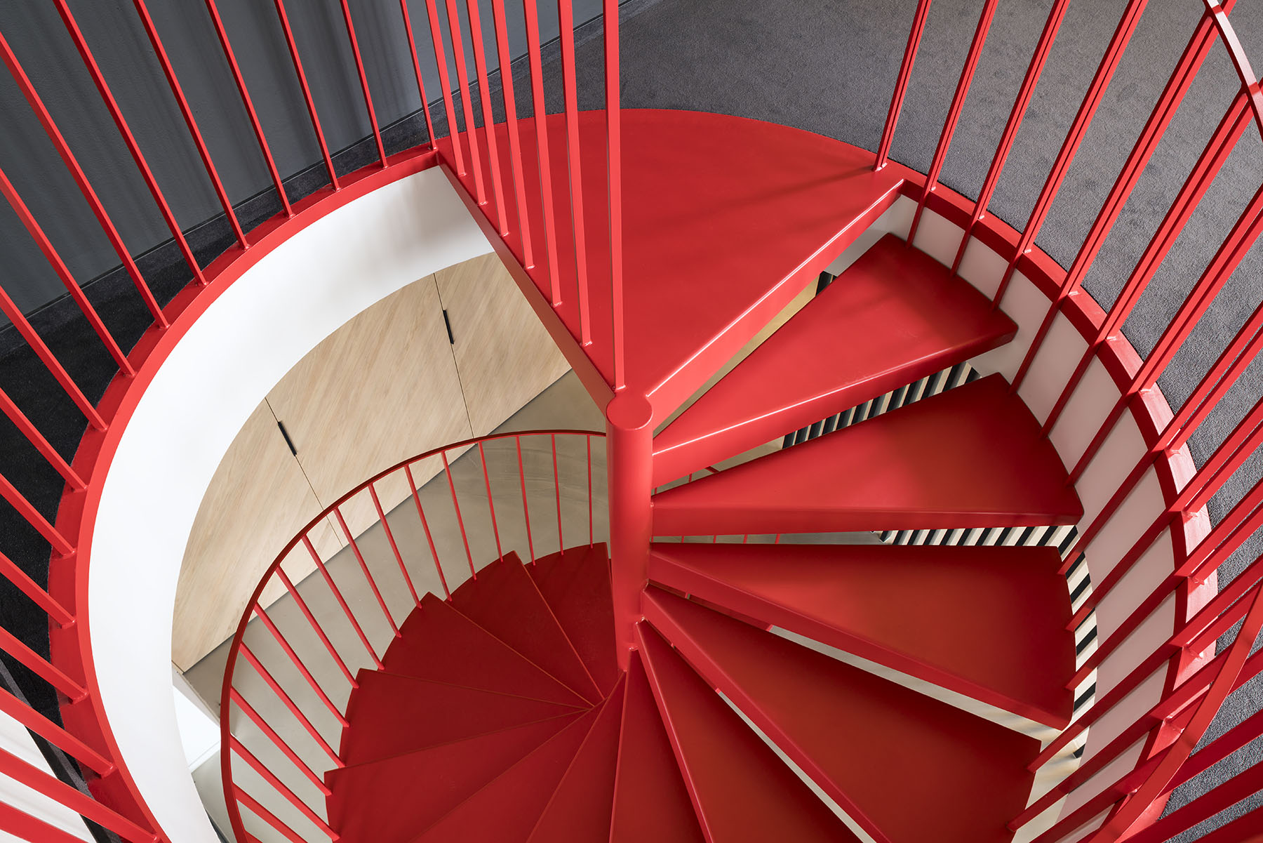 tak kopíruje půdorysnou stopu lamelové příčky v přízemí. Zvolená paleta