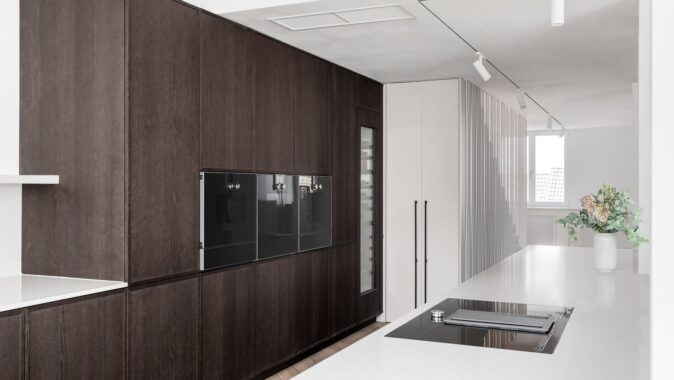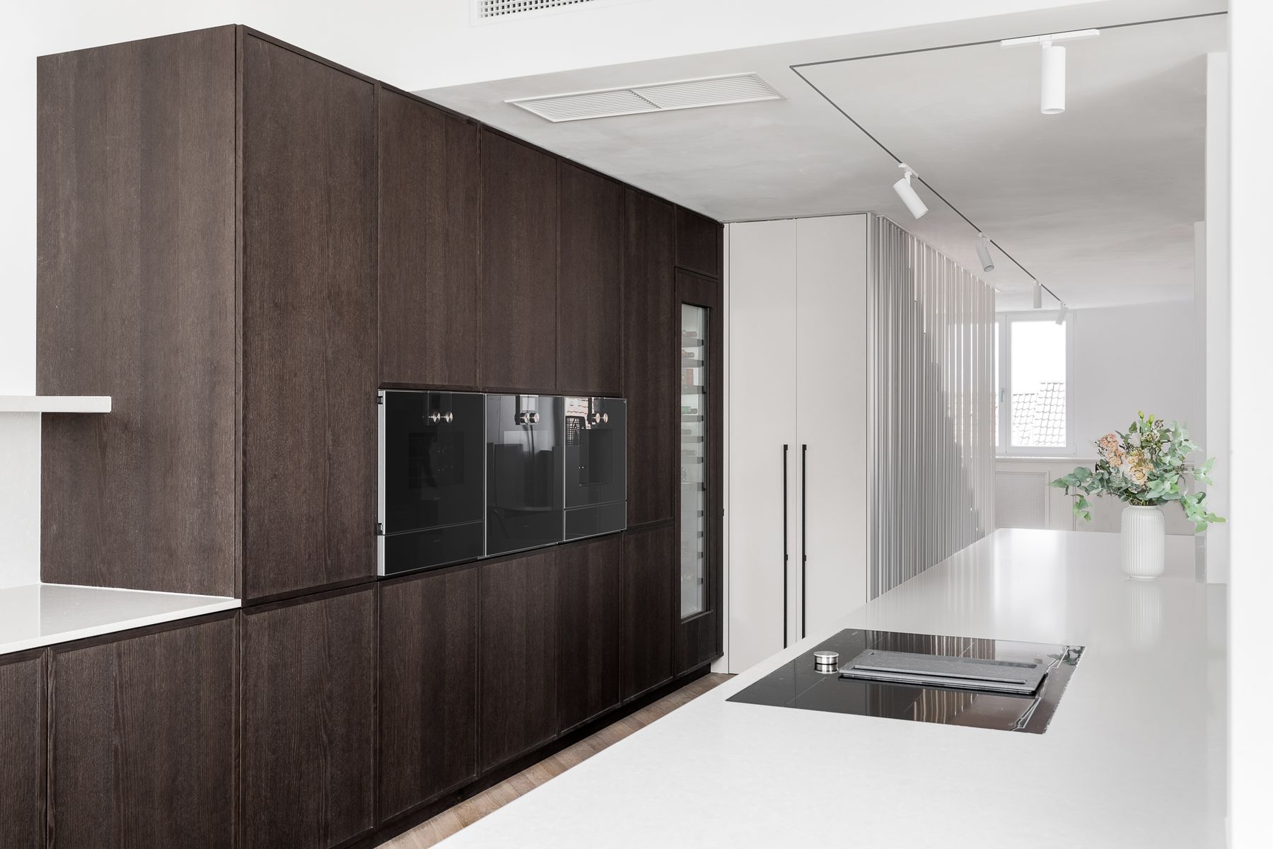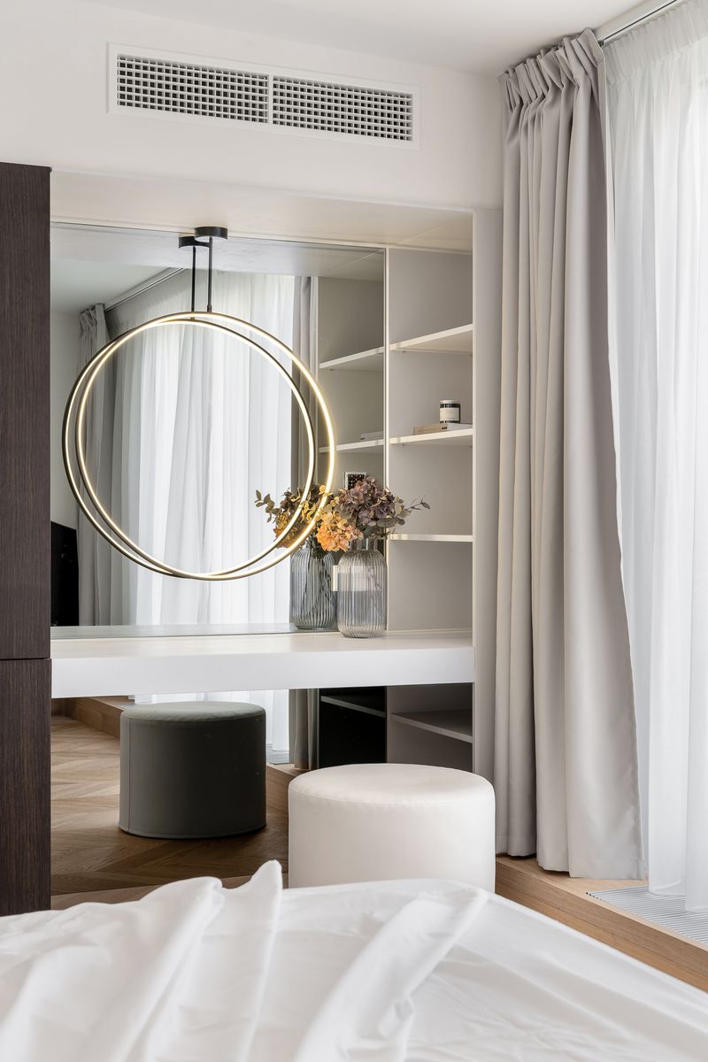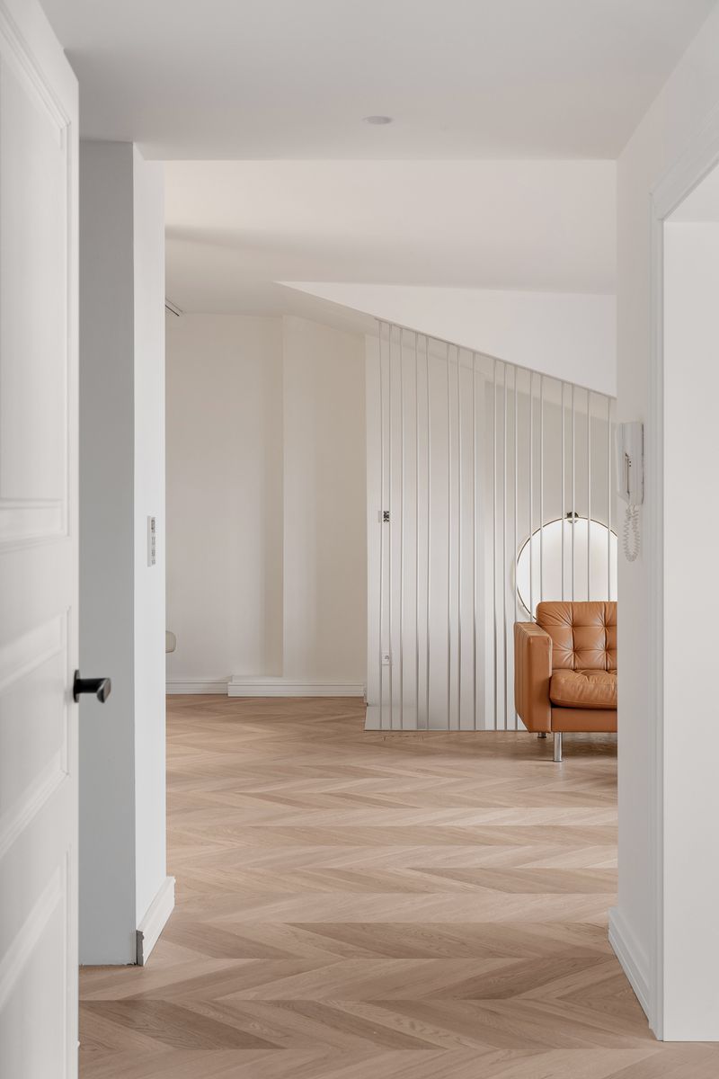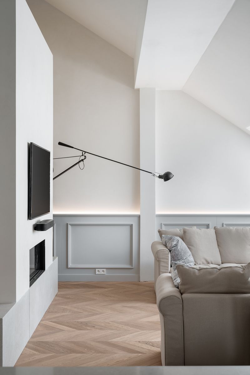 Na velkorysých 307 m2 najdete vše, co pro rodinný život v centru metropole člověk potřebuje. Funkce bytu primárně odlišuje dvoupatrové členění. Zatímco dolní patro slouží ke společnému životu, návštěvám a pro děti, horní patro nabízí jeho obyvatelům intimitu a soukromí.