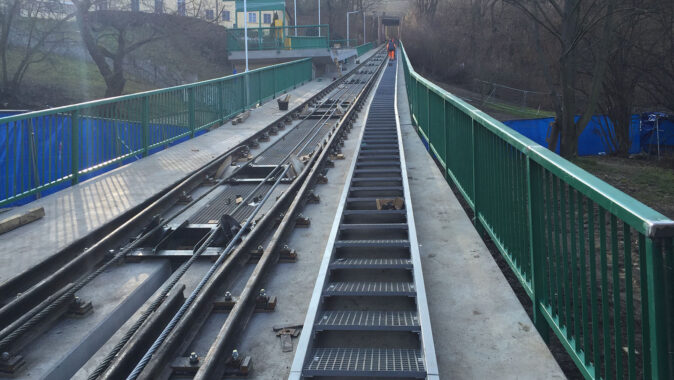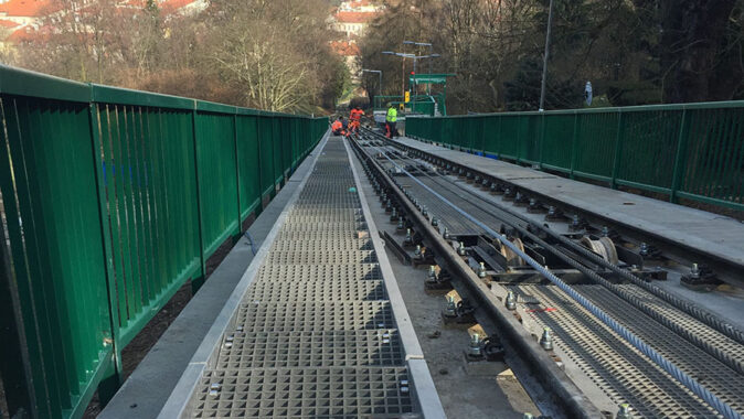 Zakrytí kabelových kanálků a instalace chodníků v lanové dráze se osvědčila díky velice dobrým bezpečným protiskluzovým vlastnostem, protipožárním vlastnostem a odolnosti vůči olejům. Protiskluzové vlastnosti roštů zajišťují bezpečnou chůzi i při mokru nebo sněžení. Kompozitní materiály také nekorodují.